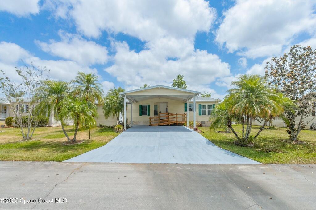 Live where you Own the Land and HOA dues are low.This 3/2 home has a large patio with a water view,two storage areas,Handicap ramp,and room for guests to park. Open floor plan for the best atmosphere in doors and a great water view out back. View rocket launches from home and enjoy the wildlife living on the water provides. Handicap ramp can be removedif you wish,you even have room to build a garage instead.a little TLC this home becomes the envy of the neighborhood.