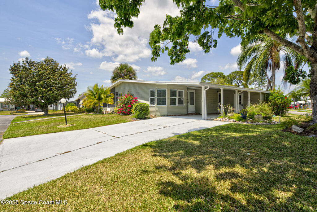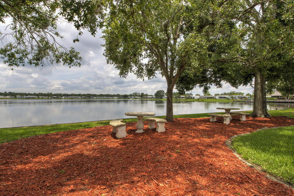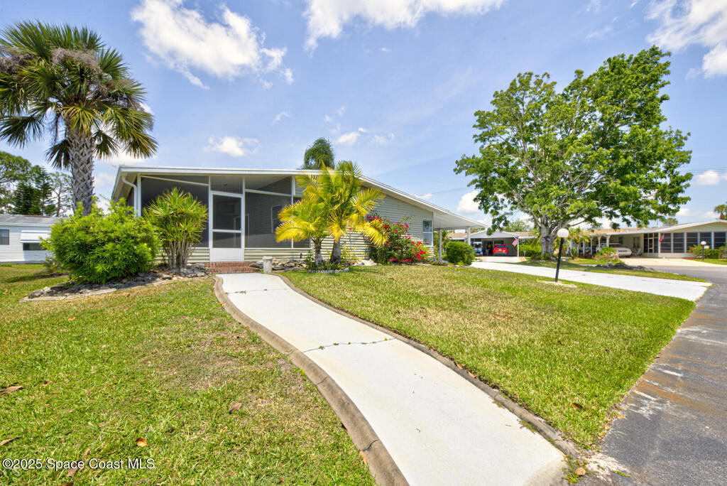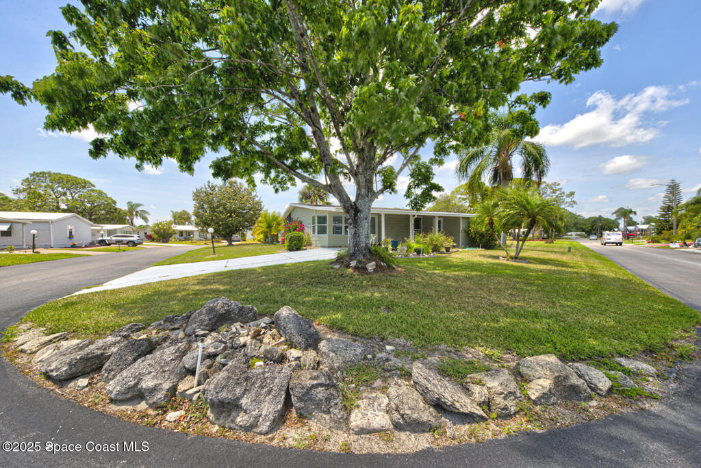 Situated on a spacious corner lot, this beautifully updated 2-bedroom, 2-bath home offers ample space and convenience--including room to park your RV or boat. Step inside to discover stylish dual-tone cabinetry, a spacious granite breakfast bar, and sleek vinyl plank flooring throughout. The open-concept layout is enhanced with modern light fixtures and ceiling fans in every room. The master suite features his-and-hers closets and a fully updated bath with a granite-topped vanity and tiled walk-in shower. The guest bath also boasts elegant granite and tile finishes. Enjoy indoor-outdoor living with glass sliders that lead to an oversized, screened-in porch, perfect for entertaining. The home also features an interior laundry room, a large outdoor storage room, and an additional storage building. Enjoy the pool, clubhouse, pickleball and shuffleboard courts, and a boat ramp.