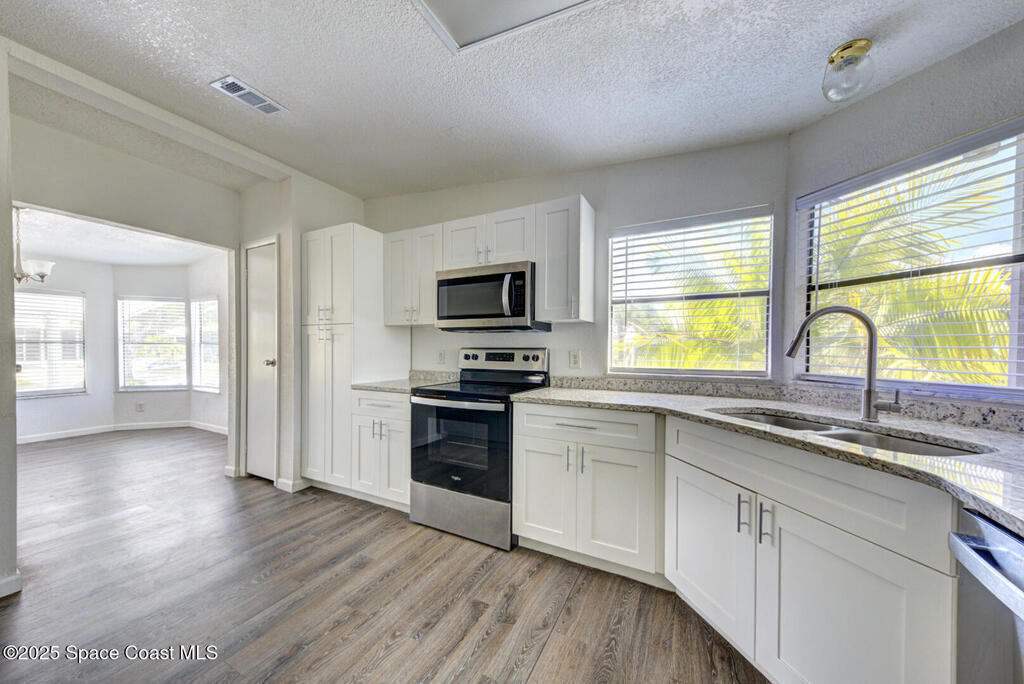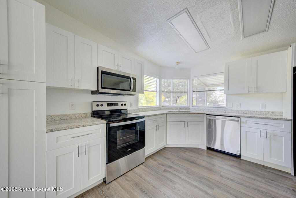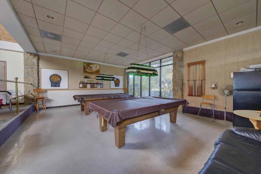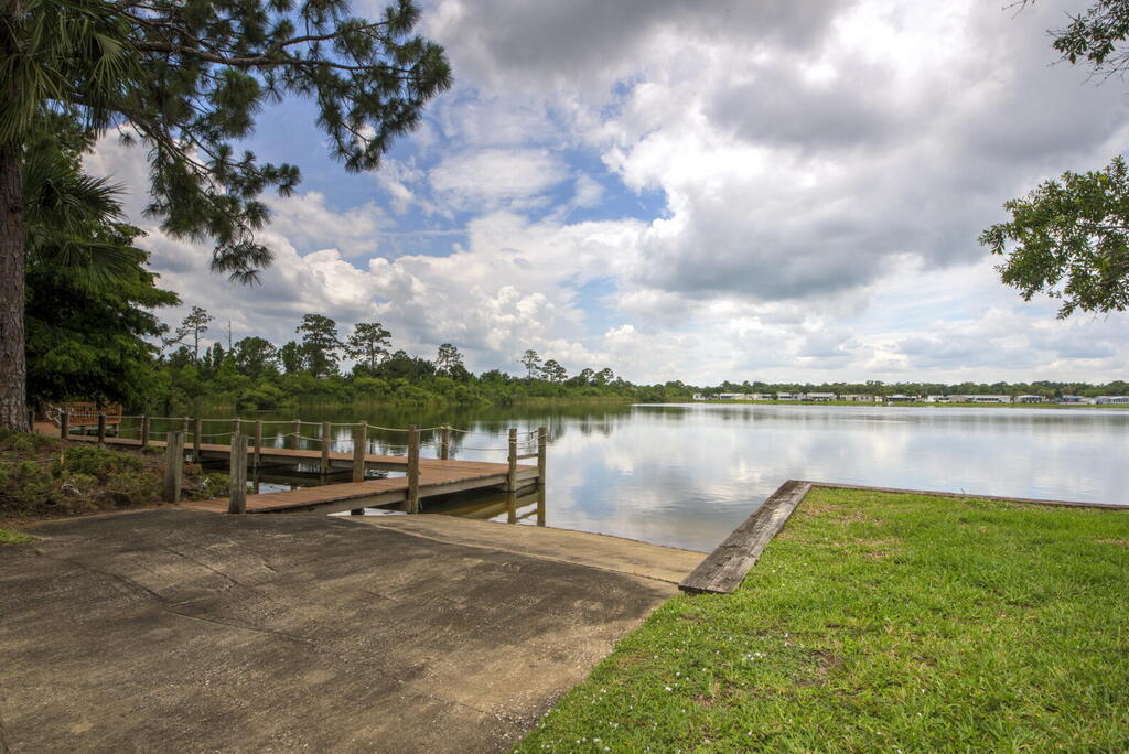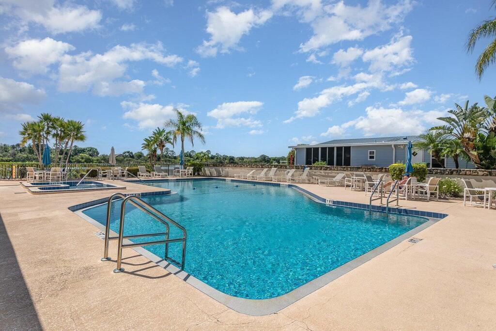 Situated on a spacious corner lot, this beautifully updated 2-bedroom, 2-bath home offers ample space and convenience--including room to park your RV or boat. Step inside to discover stylish dual-tone cabinetry, a spacious granite breakfast bar, and sleek vinyl plank flooring throughout. The open-concept layout is enhanced with modern light fixtures and ceiling fans in every room. The master suite features his-and-hers closets and a fully updated bath with a granite-topped vanity and tiled walk-in shower. The guest bath also boasts elegant granite and tile finishes. Enjoy indoor-outdoor living with glass sliders that lead to an oversized, screened-in porch, perfect for entertaining. The home also features an interior laundry room, a large outdoor storage room, and an additional storage building. Enjoy the pool, clubhouse, pickleball and shuffleboard courts, and a boat ramp.