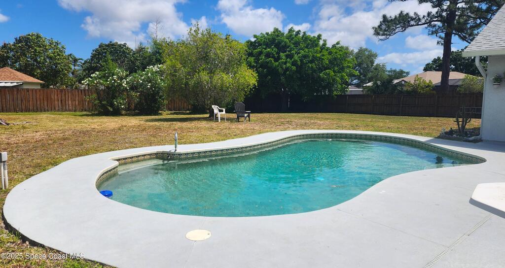 Fantastic price for a 3 Bedroom, 2 Bath Pool home with a spacious floor plan. Huge fenced in back yard. Roof 9/2024, New Dishwasher 4/24, AC 3 years old. Living room, Dining room, eat in kitchen and family room. Hurricane Panels. Summer is coming - beat the heat with this pool home!
