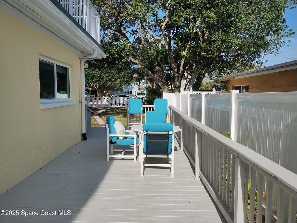 Location, Location, Location! So close to the beach you can hear the Ocean! Here is your opportunity to enjoy this fabulous Cocoa Beach house. This home offers beautiful wood maple floors. Custom cabinetry, granite countertops, gas range, water heater and dryer, stainless steel appliances. Bonus room off kitchen/living area. 1/2 bath and walk-in laundry room on ground flour. Upstairs has 2 primary bedroom suites. Primary bath with jetted tub, granite counters. Other suite has plenty of sleeping accomodations and beautifully updated bathroom with walk in shower. Hurricane impact windows. Outdoor shower, wrap around balcony and a large deck to enjoy. Easy walk to downtown Cocoa Beach and all it has to offer. Friday Fest the third Friday of the month with food, music and art. Great restaurants, lots of shopping and entertainment. Watch the rocket launches from the front yard. Lawn care and internet included in rent. Available for one month term or longer. $3200 for short term.