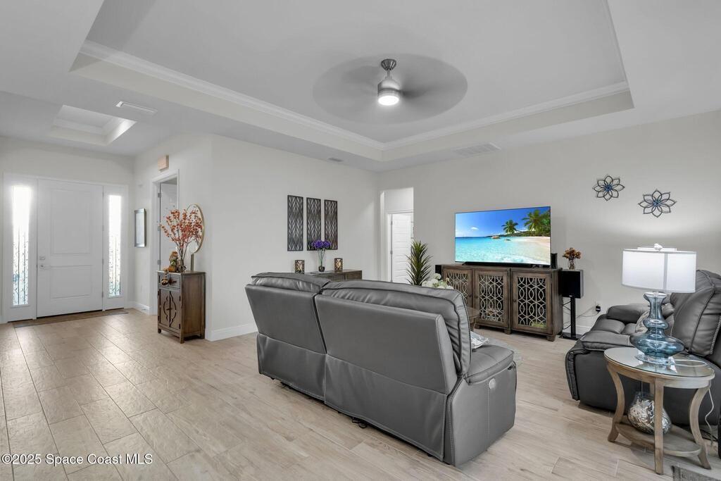 Located on a CITY WATER lot ,this split floor plan features hurricane-rated windows, porcelain wood-look tile, and premium granite countertops in both the kitchen and bathrooms. Luxury finishes like floor-to-ceiling tile in the tub and shower, and solid wood cabinets with soft-close features. The grand 8' front door and soaring 9'4'' ceilings create an impressive ambiance, perfect for entertaining. Currently under construction, photos shown are of a previous build with the same layout. Move in Ready!