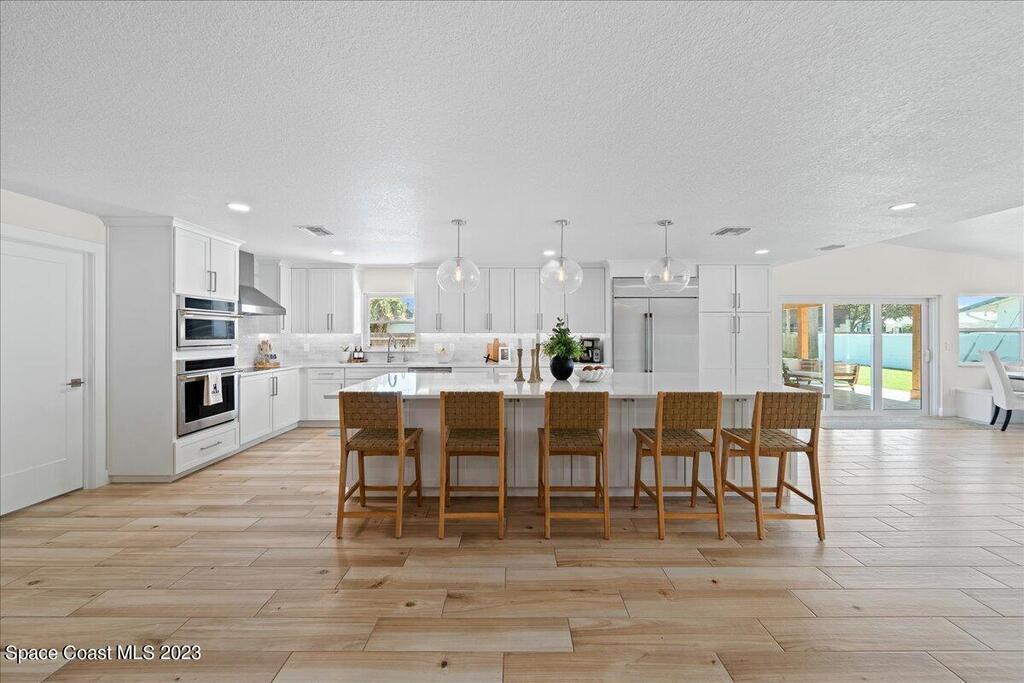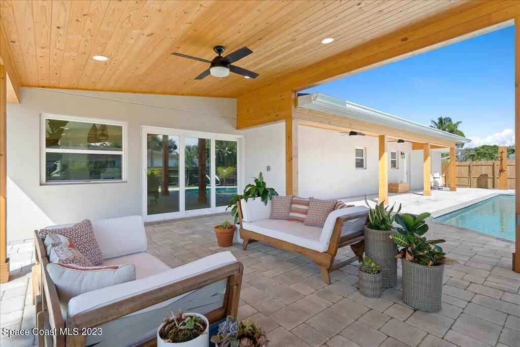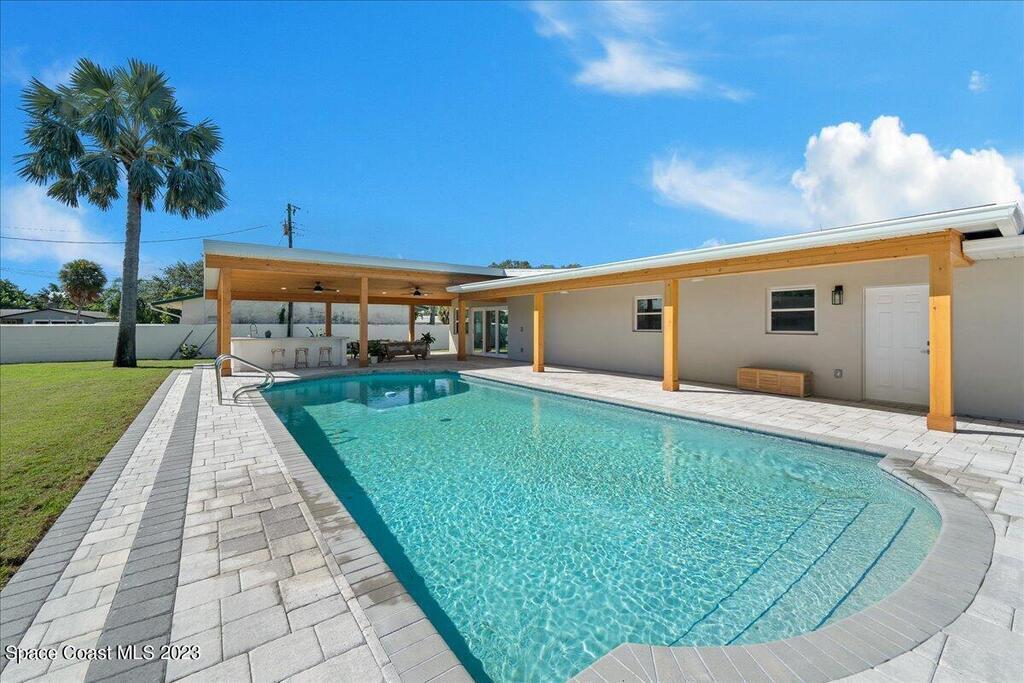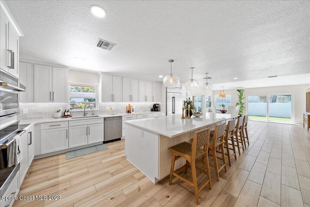 Welcome to this exquisite, one of a kind property in the heart of Satellite Beach. Featuring 5 beds, 3 baths and over 3,000 sqft of living space, this luxury home was meticulously designed with complete attention to detail from top to bottom and has an effective year built of 2022. Just bring your clothes and toothbrush to this fully furnished oasis as everything is included from wi-fi, electric, pool maintenance, lawn care, pest control, water and sewer. Perfect if you are renovating, relocating, or just need a place to relax for a while. Kitchen features an enormous 12 ft island with quartz countertops, full set of Monogram appliances with a seamless inset convection cook top and a 48 inch built in fridge.