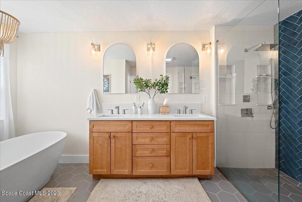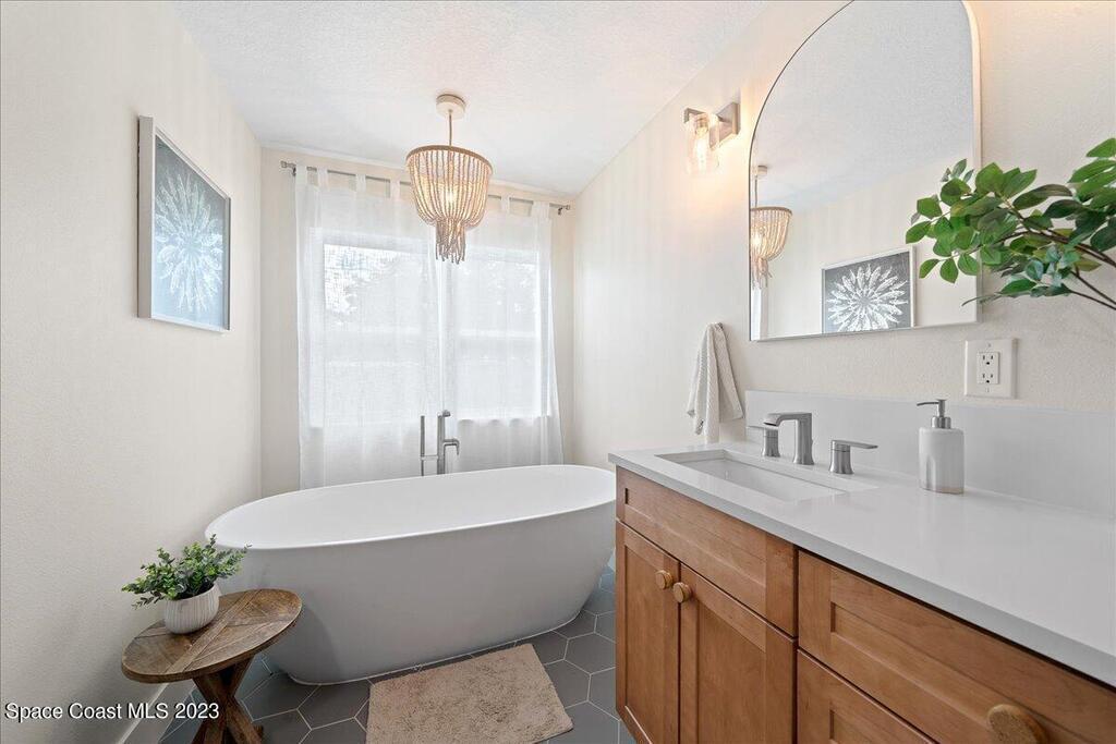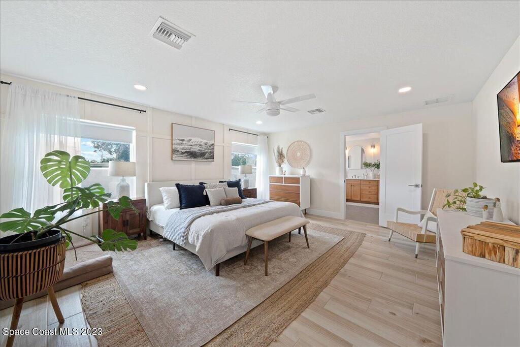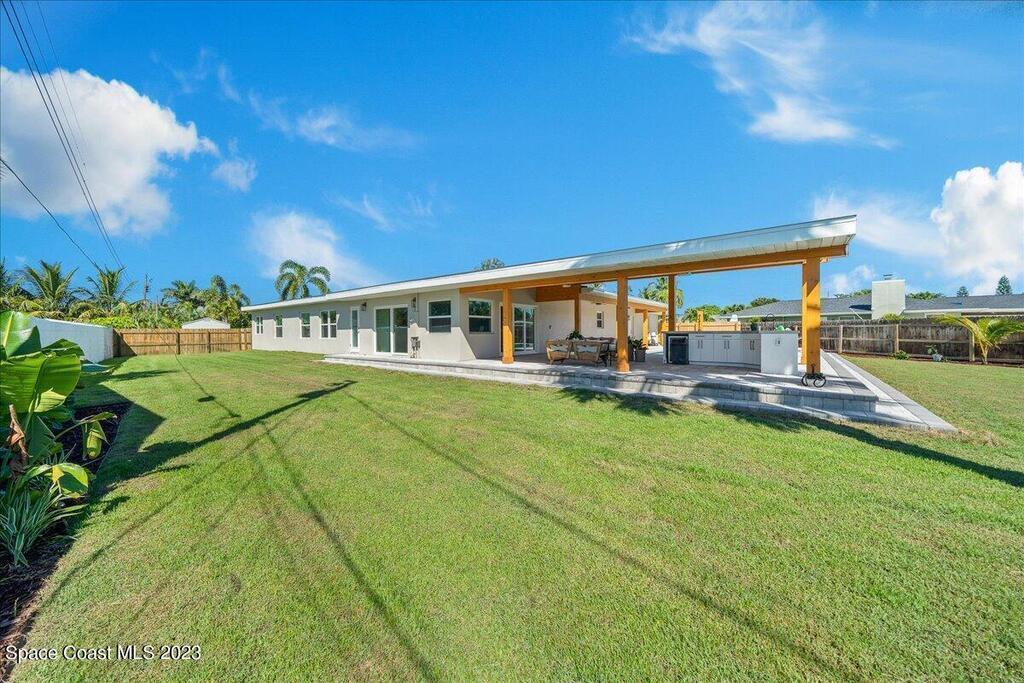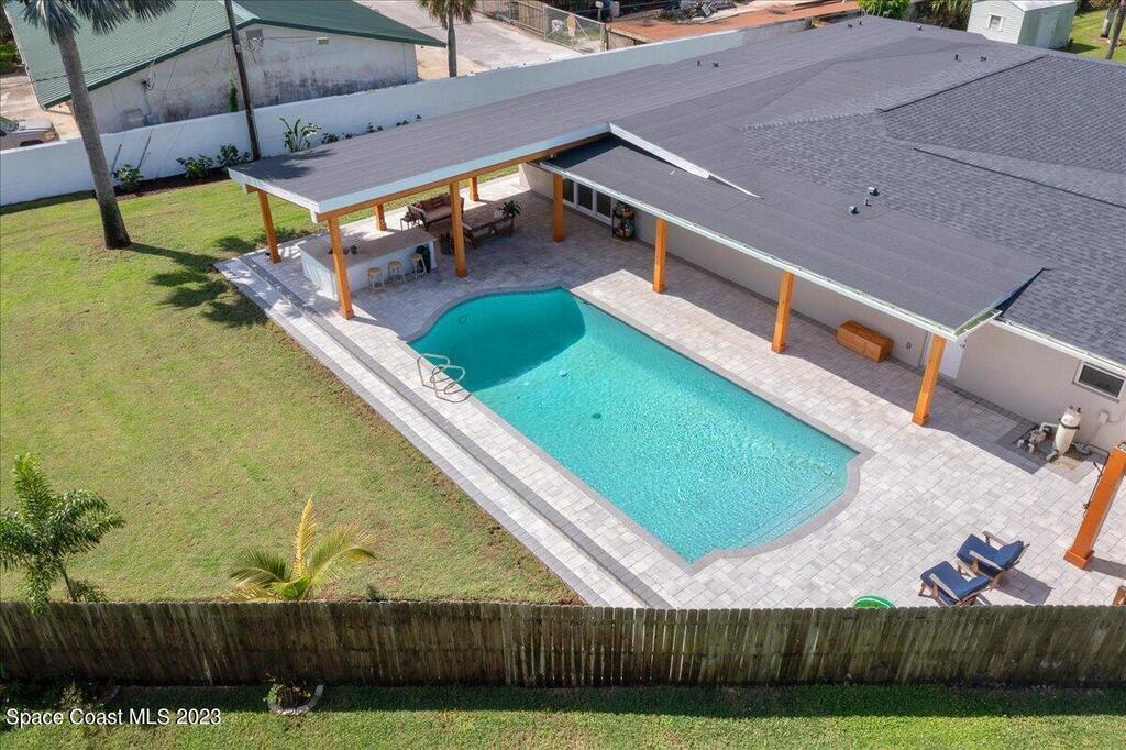 Welcome to this exquisite, one of a kind property in the heart of Satellite Beach. Featuring 5 beds, 3 baths and over 3,000 sqft of living space, this luxury home was meticulously designed with complete attention to detail from top to bottom and has an effective year built of 2022. Just bring your clothes and toothbrush to this fully furnished oasis as everything is included from wi-fi, electric, pool maintenance, lawn care, pest control, water and sewer. Perfect if you are renovating, relocating, or just need a place to relax for a while. Kitchen features an enormous 12 ft island with quartz countertops, full set of Monogram appliances with a seamless inset convection cook top and a 48 inch built in fridge.