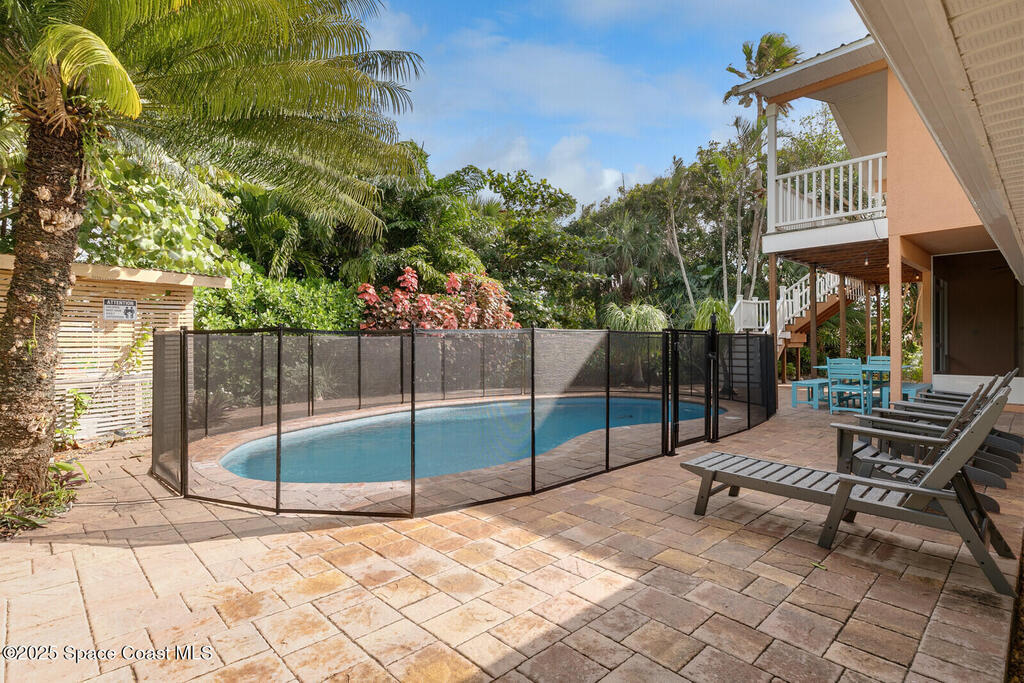 Excellent opportunity to purchase coastal Melbourne Beach home within prestigious GOLDEN TRIANGLE location, 3-minute walk to our quiet beautiful beaches without crossing A1A. Spectacular mature tropical landscaping throughout back and side yard patios allow for privacy and peaceful outdoor living. 2nd Flr Master en-suite with balcony, open floor plan with tons of French doors allowing tons of light and bright living space. Location is a few minutes' walk, bike or golf cart to our thriving downtown restaurants and shops. 3 car garage, circular driveway and charming front courtyard makes this a perfect primary for raising a family, second home or investment.