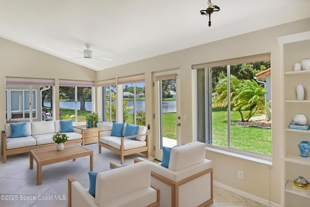 Welcome Home to 7636 CANDLEWICK DRIVE, nestled on a CORNER LOT in a beautifully maintained GATED COMMUNITY. This LIGHT-FILLED home features VAULTED CEILINGS, SKYLIGHTS, & a stunning view of the POND. The chef's kitchen offers GRANITE COUNTERTOPS, an ISLAND, TILE BACKSPLASH & a BREAKFAST NOOK w/ a CHANDELIER. SPACIOUS BEDROOMS include PLANTATION SHUTTERS & CEILING FANS. MASTER SUITE features a DOUBLE-DOOR ENTRY, HIS & HER CLOSETS, a DUAL-SINK VANITY, WALK-IN SHOWER & CUSTOM CABINETS. Enjoy the ENCLOSED REAR PORCH that expands the living space and has access to your PRIVATE PATIO. Notable upgrades include a HIGH-END STONE-COATED METAL ROOF, RINNAI TANKLESS WATER HEATER, and ACCORDION HURRICANE SHUTTERS on select windows. INDOOR LAUNDRY ROOM w/ a UTILITY SINK & the WASHER & DRYER ARE INCLUDED. GARAGE has a PAINTED FLOOR, STORAGE CABINETS, RACKS, & a PEG BOARD. Just steps from the COMMUNITY POOL w/ COVERED SEATING. Nearby DINING, SHOPPING & ENTERTAINMENT! SCHEDULE YOUR TOUR TODAY!