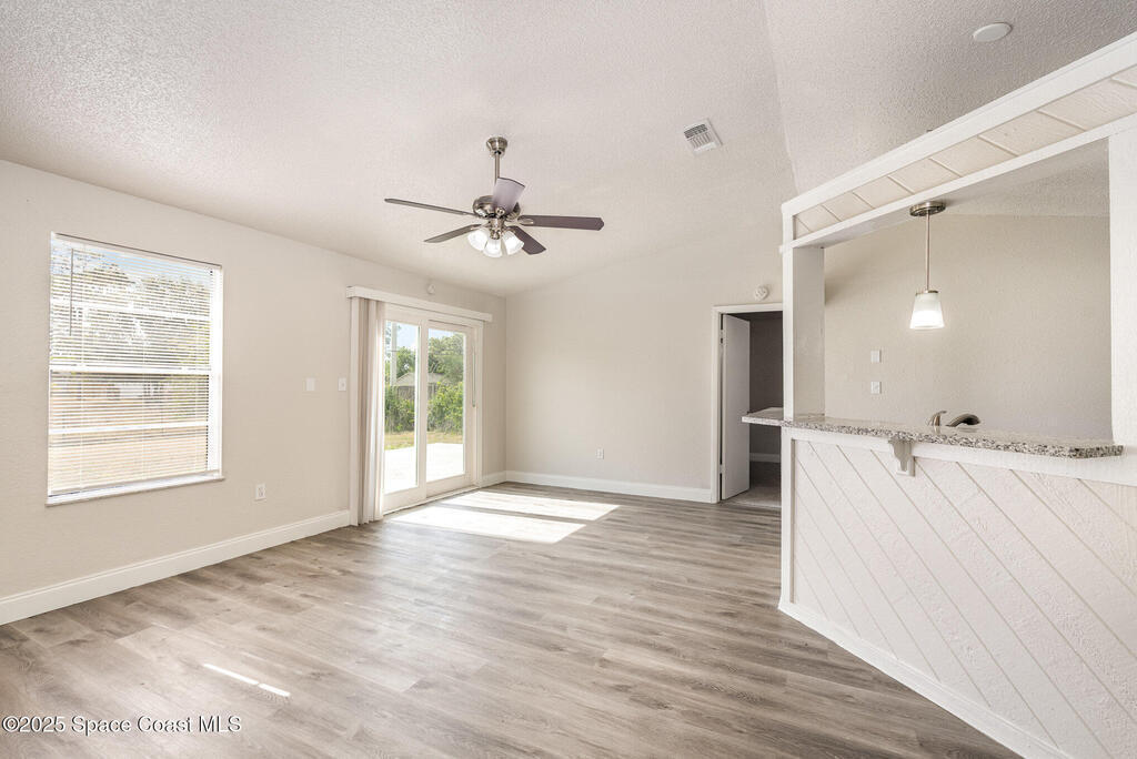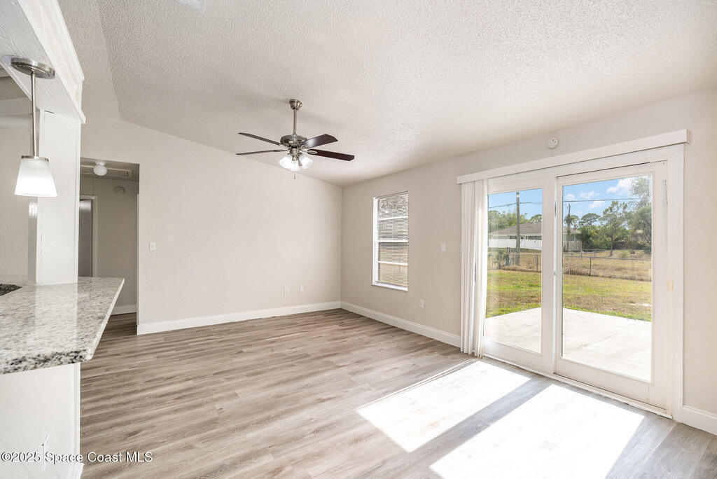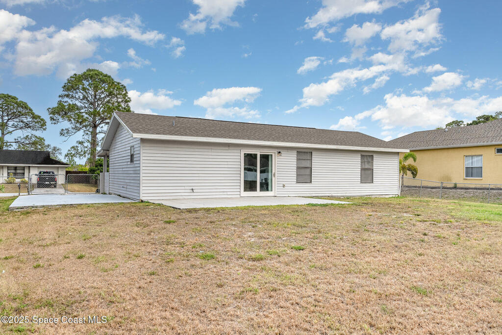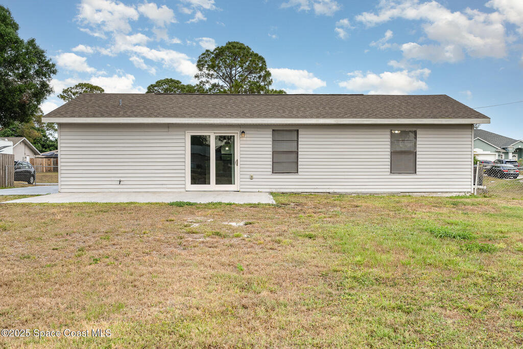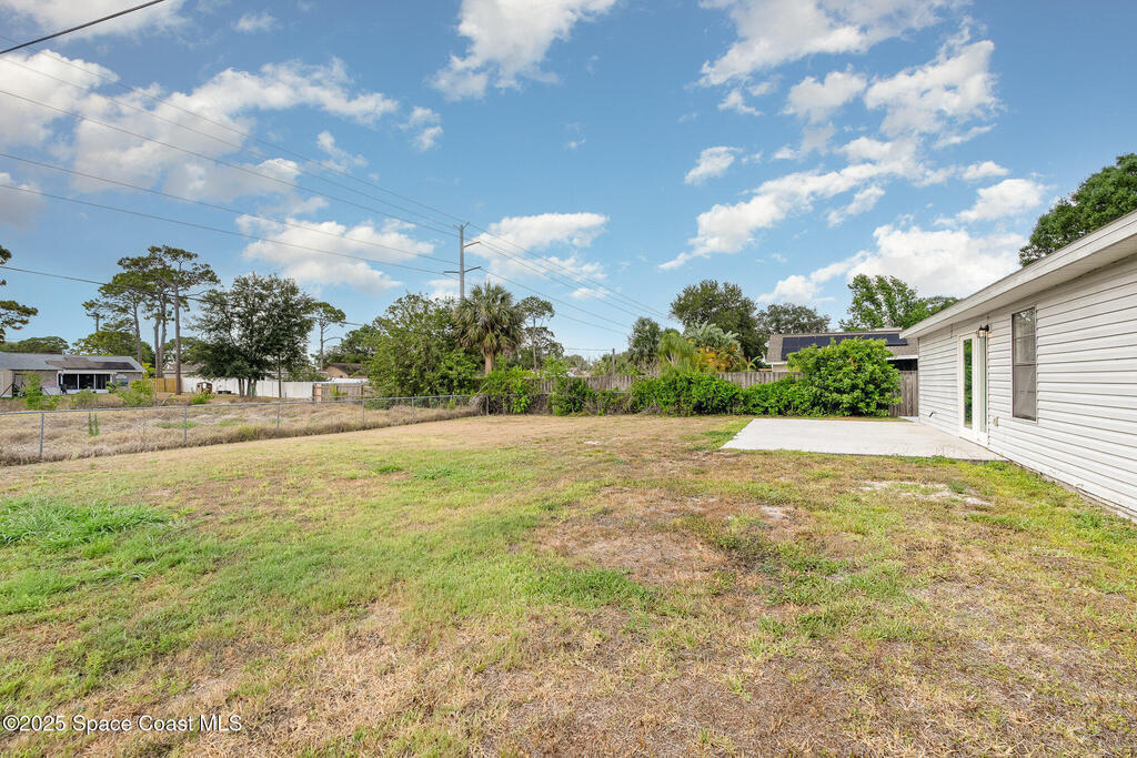 Welcome to this freshly updated 3-bedroom, 2-bath home on a spacious 0.35-acre lot in NW Palm Bay. Featuring new luxury vinyl plank flooring throughout, a split-bedroom layout, and a bright kitchen with a pantry, this 1,104 sq ft residence offers comfort and style. Enjoy outdoor living on the covered porch and patio, with ample room to expand or entertain. Nestled on a quiet street, you're just 12 minutes from I-95 and Hammock Landing Shops, 20 minutes to Downtown Melbourne, and 25 minutes to the beach. Nearby parks include Turkey Creek Sanctuary and Fred Poppe Regional Park. Experience the perfect blend of tranquility and convenience in this move-in-ready home.