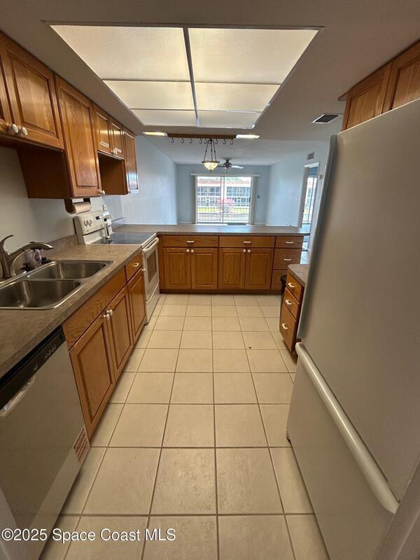 Spacious 2 bedroom, 2 bath unit in 55+ community of Island Village avail now. Open floor plan with living dining combo, kitchen, and laundry room with washer & dryer. Bedroom features large walk in closet with private bathroom. Back patio has 2 extra storage closets. Well maintained complex offers an abundance of amenities, pool, shuffleboard, tennis courts, clubhouse with exercise equipment, RV/Boat storage and even a putting green! Conveniently located near the beach, Port Canaveral, shopping, restaurants, easy access to SR 528/I-95, less than an hour to Orlando and attractions.