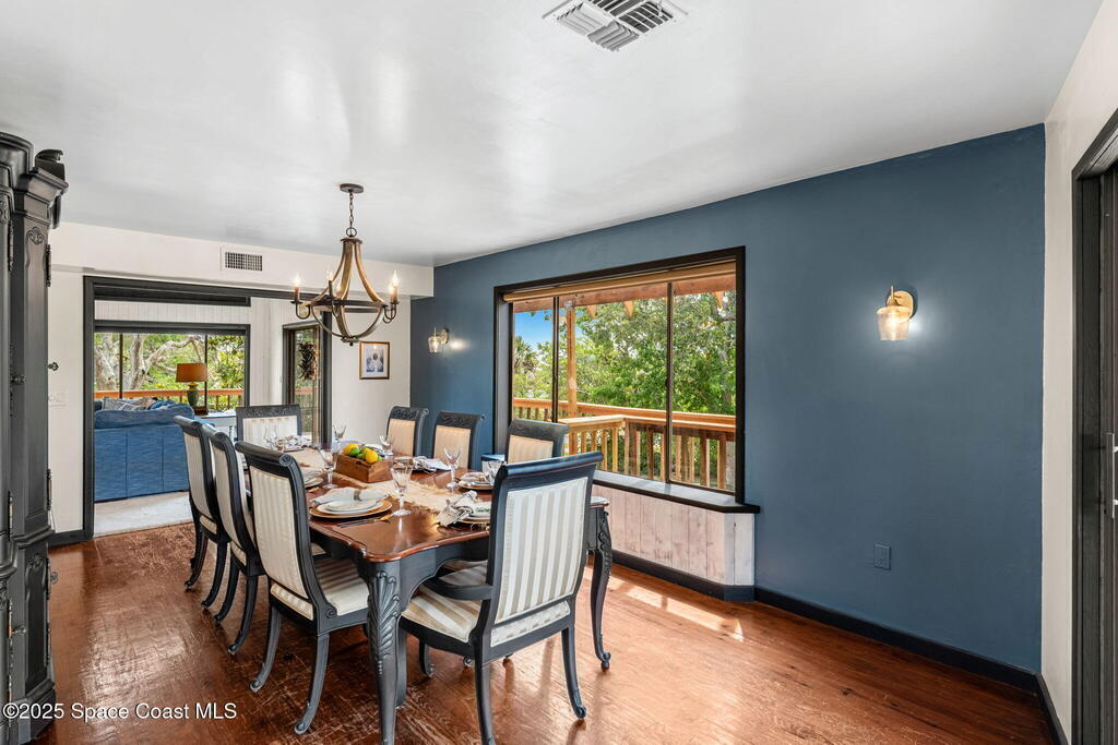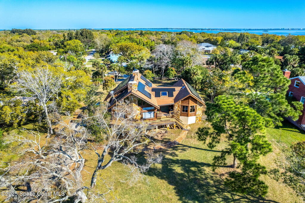 Assumable 2.375% VA $750,000 Mortgage . Tucked away on a full acre in the exclusive Still Water Subdivision of South Merritt Island, this custom cedar home offers rare privacy and natural beauty. Surrounded by towering oaks and set atop one of the island's highest elevations in the historic Georgianna area, the 3-level beautiful estate A fully remodeled kitchen adds modern style, while three wood-burning fireplaces bring warmth and charm. The layout includes a third-floor master retreat, two bedrooms and main living on the second level, and a private guest/in-law suite on the ground floor--ideal for multigenerational living. Soaring ceilings and rich wood details create a comfortable, inviting feel. Step outside to your private pool or enjoy Honeymoon Lake's community dock across the street with direct access to the Indian River. Just 15 minutes from the beach and close to the Cape, PAFB, and Melbourne--this one-of-a-kind estate blends space, seclusion, and timeless character