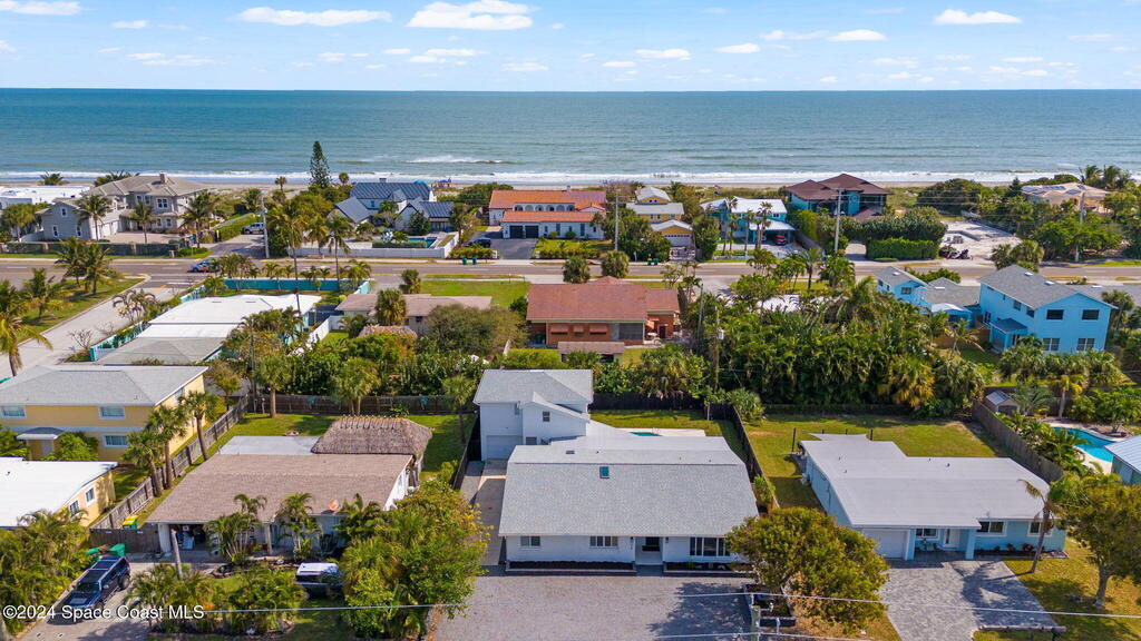 The perfect opportunity for beachside living less than 1 mile to Downtown Cocoa Beach and a short stroll to the ocean. This pool home features a 5 bedroom 2 bathroom main house with a 1 bedroom 1 bathroom, 700 sq ft guest apartment with full kitchen over the garage. The spaces are licensed Short Term Rentals and provides fantastic monthly income. Recent updates and standout finishes include a newer roof, HVAC, stone counters, new flooring throughout, stainless appliances, huge kitchen island, a shiplap accent wall, crown molding, a resurfaced pool, fencing, the list goes on. In addition to the driveway up to the garage there is ample graveled parking in front of the home. Minutes to area shops and restaurants, Cocoa Beach is a dream destination and perfect town for investment. Currently a top 10 rated surf town in the world, you'll never want to leave.