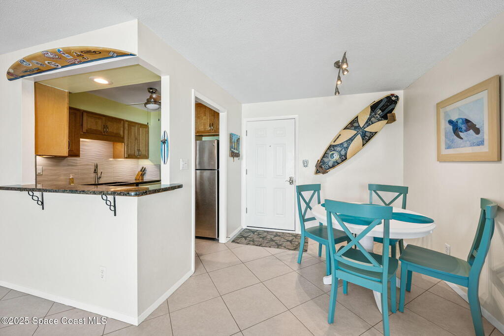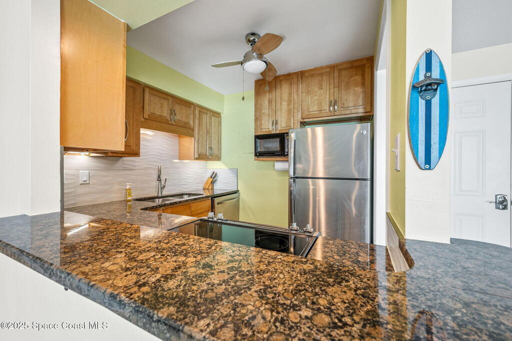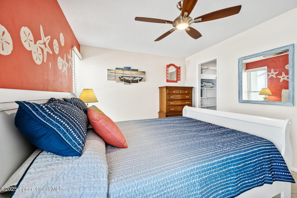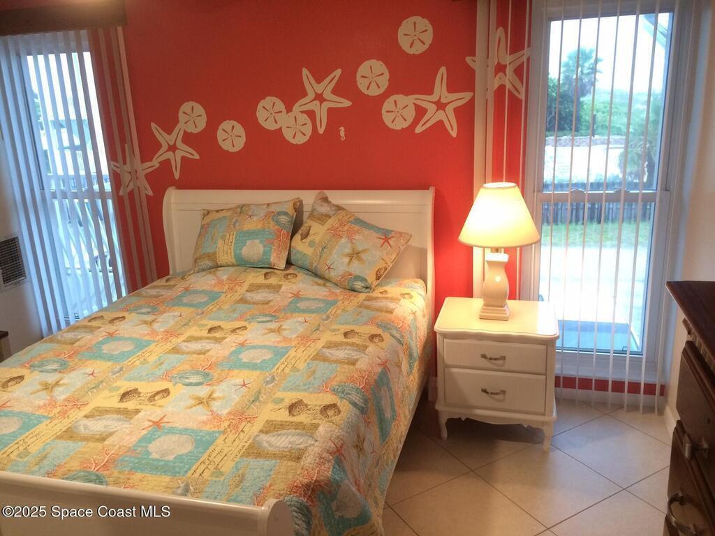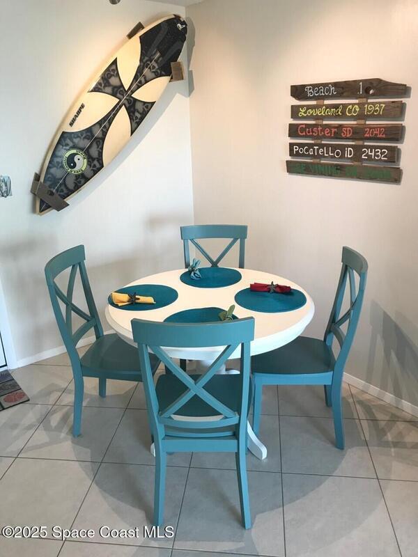 The Quiet part of Cocoa Beach Fully Furnished Vacation home or Full Time Residence Condo has everything you need! Weekend getaways or monthly Rentals, whatever you desire! Totally remodeled Kitchen and Bathroom. AC conditioner and Water Heater NEW in 2025. Both the Sliding Glass Door (2018) and the 2 bedroom windows (2014) are Hurricane Rated . Second floor North Side of building offers great views of all the Rocket Launches from your large balcony. Spacious 1 large bedroom 13X10.6 with a walk-in closet 8X10 and 1 like new spacious bath 7.5X5, Living Room is 16X13.4, an 8X8 Dining area an 8X7 Kitchen. The Covered Balcony is16X6. The condo comes Fully Furnished At no Cost to the Buyer.(Large Canvas Turtle and Ceramic Crab Not included).Leased till Dec. 30, 2025