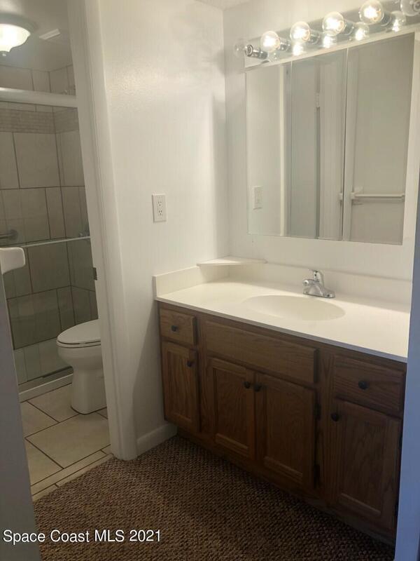 Freshly painted, large ground floor 1 bedroom unit in 55+ community of Island Village avail now. Open floor plan with living dining combo, kitchen, and laundry room with washer & dryer (provided but not warranted). Bedroom features large walk in closet with private bathroom. Back patio has 2 extra storage closets. Well maintained complex offers an abundance of amenities, pool, shuffleboard, tennis courts, clubhouse with exercise equipment, RV/Boat storage and even a putting green! Conveniently located near the beach, Port Canaveral, shopping, restaurants, easy access to SR 528/I-95, less than an hour to Orlando and attractions.