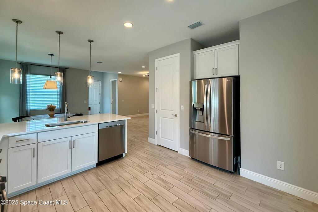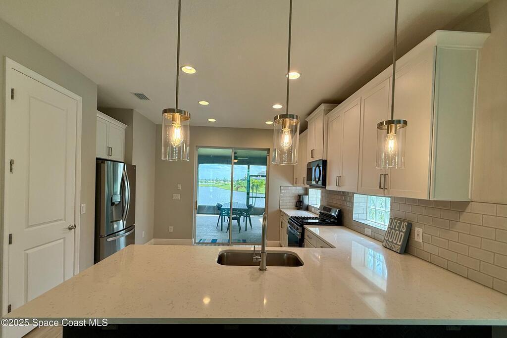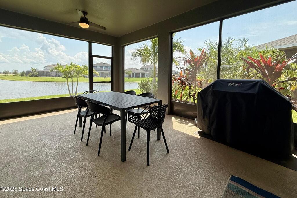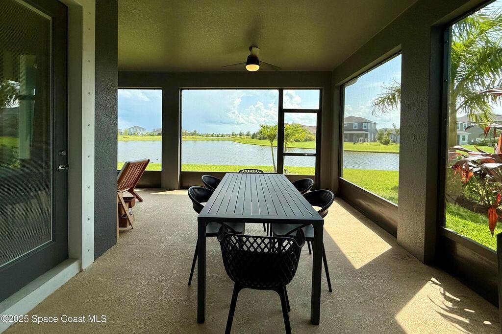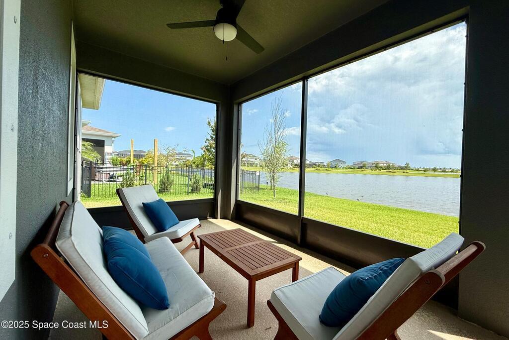 This immaculate home features 3 bedrooms, 2 bathrooms, and a 2 car garage. The open floor plan boasts a gourmet kitchen with gas range and stainless appliances, seamlessly leading to the covered lanai and cafe area where you can enjoy breathtaking serene lake views. This spacious great room plan is perfect for entertaining, while the private master retreat, accessible via a separate hallway, offers a large walk in custom closet, dual sinks and walk in shower. Very light and bright floor plan. Extra long pavered driveway for you and all your guests. Occupants can join the Addison Village Club and enjoy access to a world -class amenity center, including a clubhouse, resort-style and lap pools, tennis courts and much more . Conveniently close to everything in Viera including shopping, entertainment and dining. First hand view of launches and short drive to the airport and space center.