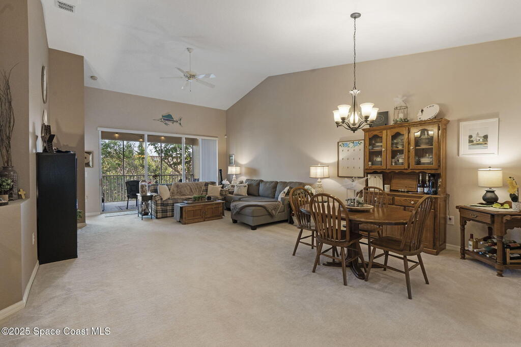 *72 Hr Kick Out Clause in place* Brand new AC and Hot water heater!!!! Don't miss this Spacious 2nd-floor unit with an open-concept floor plan, soaring vaulted ceilings, and an abundance of natural light streaming in through large windows and sliders, all with a garage and storage space! The interior is move-in ready and waiting for your personal touch. The kitchen boasts clean lines, ample counter space, a breakfast bar, overlooking the dining/living area--perfect for entertaining. Whether you're prepping dinner or enjoying your morning coffee, you'll love the functional layout and visibility into the rest of the home. The primary suite is generously sized, featuring a walk-in closet with a recently updated walk-in shower. Two additional bedrooms offer flexibility--perfect as a guest room, office, or den, with an adjacent full bathroom for added convenience.The screened-in balcony is your private oasis to relax, sip a cool drink, and enjoy warm Florida evenings.