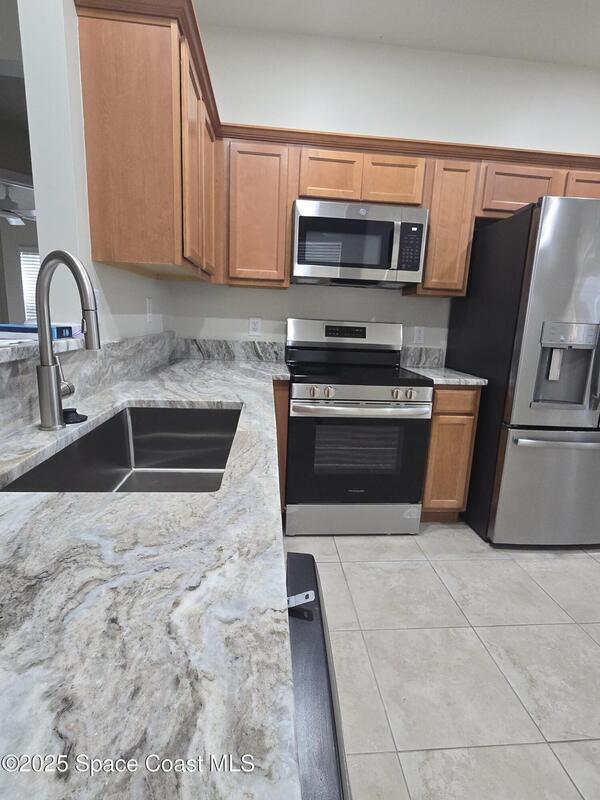 Beautiful Home in Newer Palm Bay Community - Prime Location Near I-95!Welcome to this stunning 3-bedroom, 2-bathroom home with a 2-car garage, located in a vibrant newer community just minutes from the new I-95 exit in Palm Bay. This move-in-ready gem features an open split floor plan with all tile flooring throughout, offering style and easy maintenance. Enjoy cooking and entertaining in your brand new kitchen with granite countertops, and relax in your spacious living areas that overlook a serene lake view. The home also includes storm shutters for added peace of mind.Step outside and take advantage of resort-style community amenities, including:A beautiful clubhouse with a fitness centerA sparkling pool with water views ,Tennis and basketball courts ,A playground and more. This home combines comfort, convenience, and an active lifestyle in one perfect package. Don't miss your chance to live in one of Palm Bay's most desirable neighborhoods!