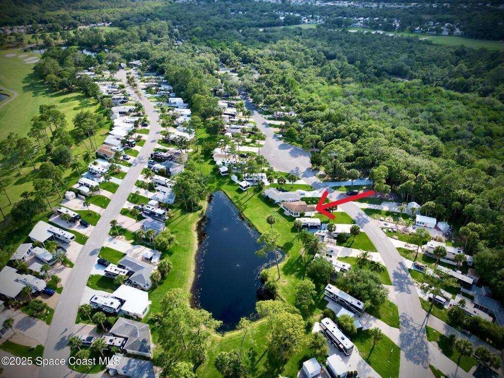Price improvement! This quaint, custom built executive suite is located within The Great Outdoors RV/Golf Resort in Titusville, Florida. You will enjoy resort-style living in this golf cart-friendly, all-age community. Your association offers a huge list of amenities, such as 2 heated pools, 2 hot tubs, a clubhouse, restaurant, sauna, gym, putting green, recently renovated 18-hole golf course, shuffleboard, pickleball, tennis, dog park, nature trails, and much more! Your association fees also cover water, sewer, internet, cable, daily trash pickup, lawn maintenance and treatment, and access to all of the resort fun! Your new lakefront home is an open suite with full kitchen appliances and a stack washer/dryer in the full bathroom. All tile floors make cleanup a breeze! A large, enclosed porch with thermal windows adds approx 192 sq ft of bonus space! Conveniently located near KSC and the natural Playalinda Beach, and less than an hour from Daytona & Cocoa beaches, Orlando attractions.
