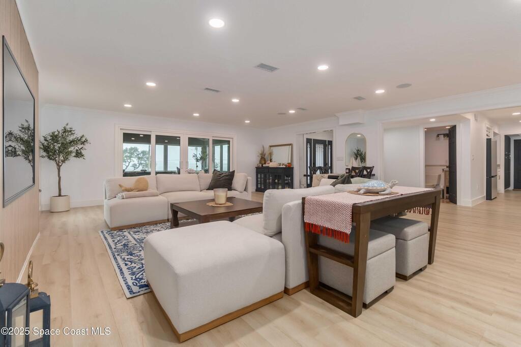 Experience the ultimate in waterfront living with this beautifully updated 3 bed, 3 bath riverfront home, complete with an office and situated on an expansive 0.88-acre lot. Enjoy breathtaking views of the Indian River from nearly every room. The kitchen has been freshly remodeled, promises to be a showstopper, designed for both everyday living and entertaining. A spacious enclosed Florida Room seamlessly blends indoor comfort with the beauty of the outdoors, making it the perfect year-round gathering space. Recessed lighting adds a warm, modern touch throughout the home, and a built-in sound system brings your favorite music to life in every corner. Step outside to your private, secure dock ideal for boating, fishing, or simply soaking in the serene riverfront lifestyle. This rare property captures the true spirit of Florida living peaceful, scenic, and just minutes from the coast.