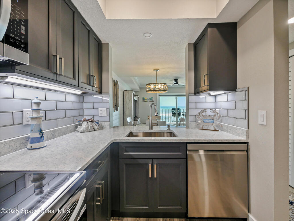 Come enjoy the Florida Lifestyle on the Space Coast in this COMPLETELY renovated 2 bedroom, 2.5 bath condo with oceanfront views. Tastefully decorated in a coastal theme, you will feel the tension of the day drain away as you make your way thru this unit glancing at the view from the gorgeous kitchen, great room and finally making your way to the patio where you will hear the waves crashing on the shore and the birds calling to you. Updates include quartz countertops, extensive tile work, stainless steel appliances and LVP flooring. Second floor of unit features 2 spacious primary suites with full bathrooms completely updated. Easy commute to the Cape Canaveral Port, and Orlando attractions. Lease terms are negotiable with short term and long term leases available as of Oct 1st. Peak Season rent of $4200/mo for Oct-Apr.
