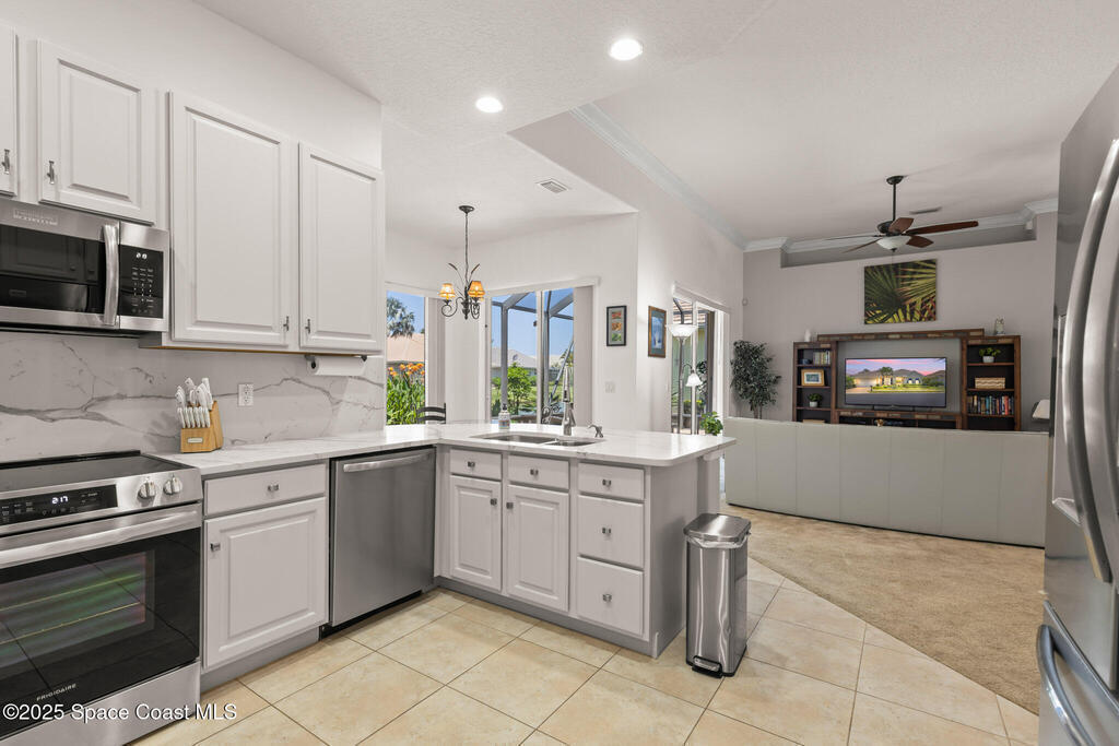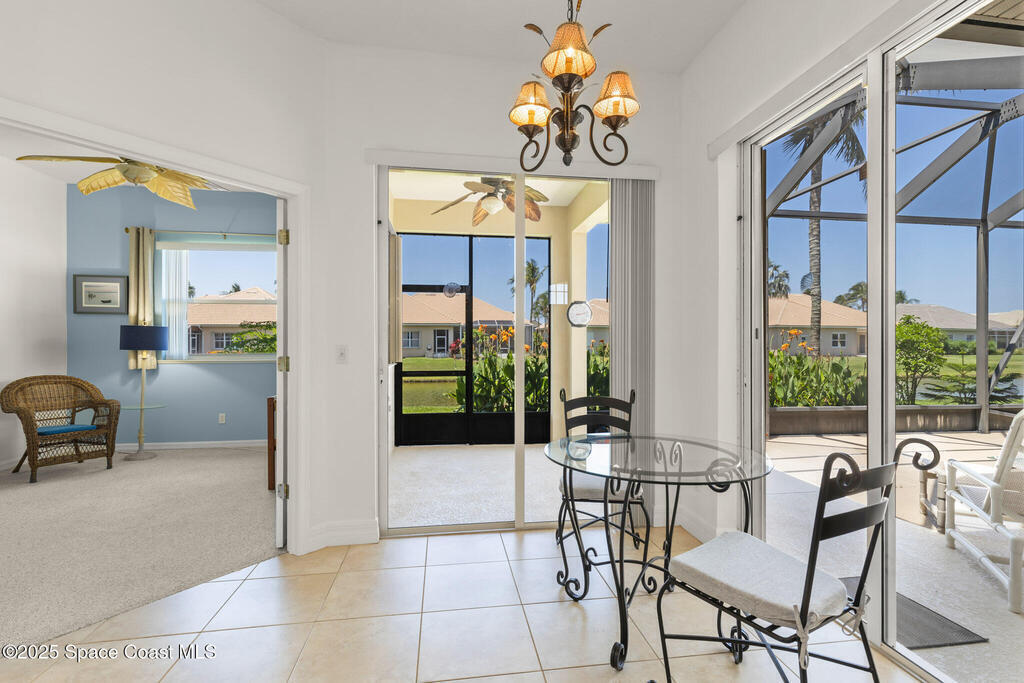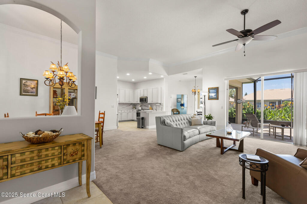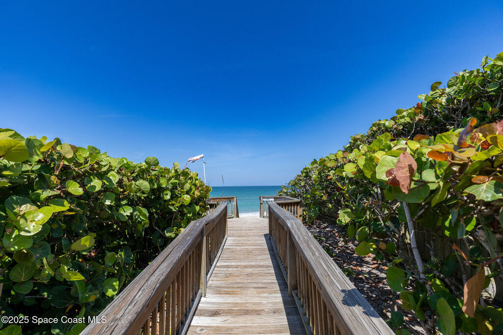 Location, location, location!Spacious open floor plan in pristine South Melbourne Beach community, Indian Landing. Embrace sunrise to sunset coastal living in this exquisite home nestled between the deeded beach access & the river pier. Heated community pool, clubhouse with kitchen, and tennis courts. Freshly painted interior, vaulted ceilings, crown molding, & beautifully renovated kitchen features quartz countertops, SS appliances & freshly painted cabinetry. Expansive sliding glass doors provide natural light & indoor/outdoor flow to an oversized screened in lanai. 2 car garage w/workbench, 2023 AC, and accordion shutters for storm protection. This home is move-in ready for seasonal, year round living or as a rental property investment.