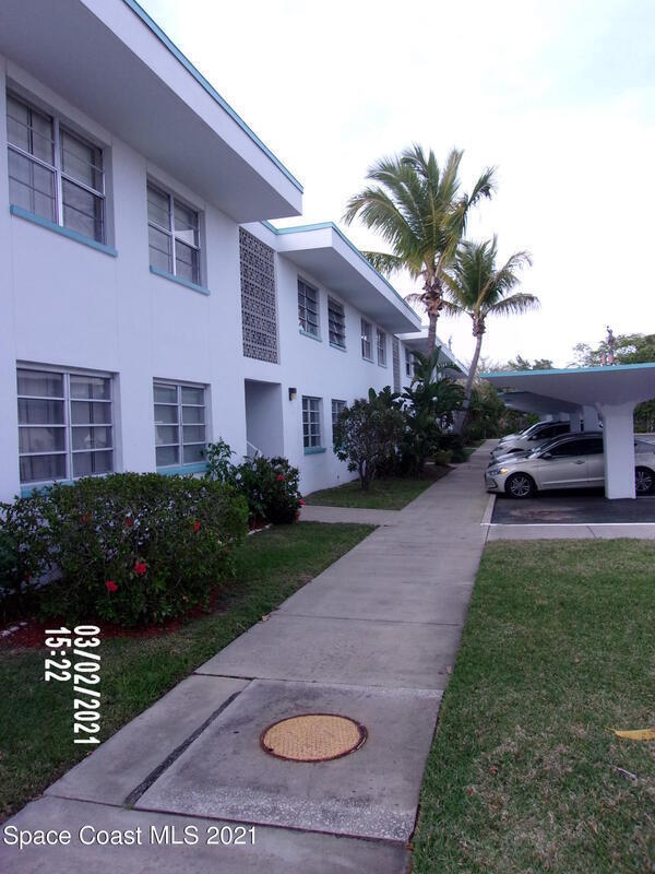 FRESHLY PAINTED and ready to go. Cute 2 bedroom condo in Atlantic Gardens. Complex located in the heart of Cape Canaveral. Close to beach and Port Canaveral. Quiet Complex with community pool. 2nd floor open floor plan unit with second entry door. Coin Laundry facility onsite. This is a NO PET community.