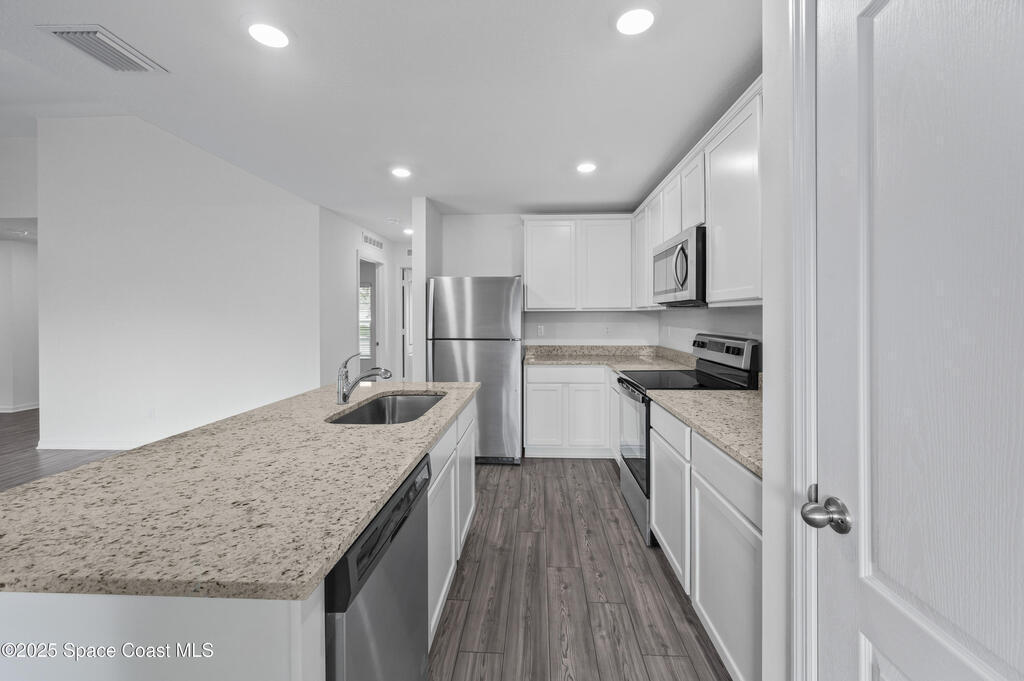 Ask us about our incentives, builder paid closing costs, & no down payment options! We're proud to present the Brickell floor plan at Palm Bay. The 3 bedroom, 2-bath retreat includes a bonus den and features a relaxed and comfortable layout the entire family will enjoy. With all new energy-efficient Whirlpool(r) appliances and granite countertops already included, hosting is made easy in this home. Featuring thousands of dollars' worth of upgrades such as front yard landscaping, an attached two-car garage and secluded master retreat with a walk-in closet make the Brickell even more desirable. Best of all, Palm Bay offers residents a premier location with convenient access to nearby shopping, golf courses, world-class area beaches and amenity-packed parks. **appliance models are subject to availability**