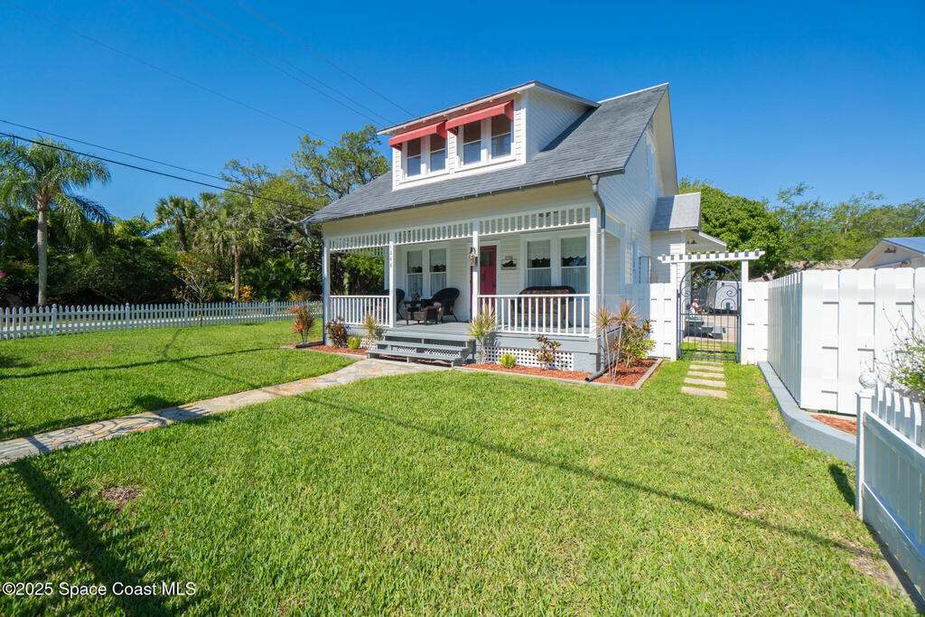BACK ON THE MARKET - Buyers couldn't fulfill the sales contingency to sell their home. Historic Charm Meets Modern Functionality in the Eau Gallie Arts District.Step back in time without sacrificing comfort in this beautifully restored 1928 historic gem, nestled in the heart of the vibrant Eau Gallie Arts District. Fully remodeled in 2014 to reflect its original period style, this 3-bedroom, 3-bathroom home blends timeless elegance with modern convenience--and offers a versatile flex room for your evolving needs.From the moment you arrive, the charm is undeniable. A classic white picket fence wraps around the spacious 1/3-acre corner lot, which features two entrances, a paved driveway, and ample parking for residents and guests alike. Whether you're hosting art walk gatherings or family barbecues, there's room for it all--including up to two RVs, with existing electrical and sewer hookups ready to go.At the rear of the property, a detached 2-car workshop presents exciting
