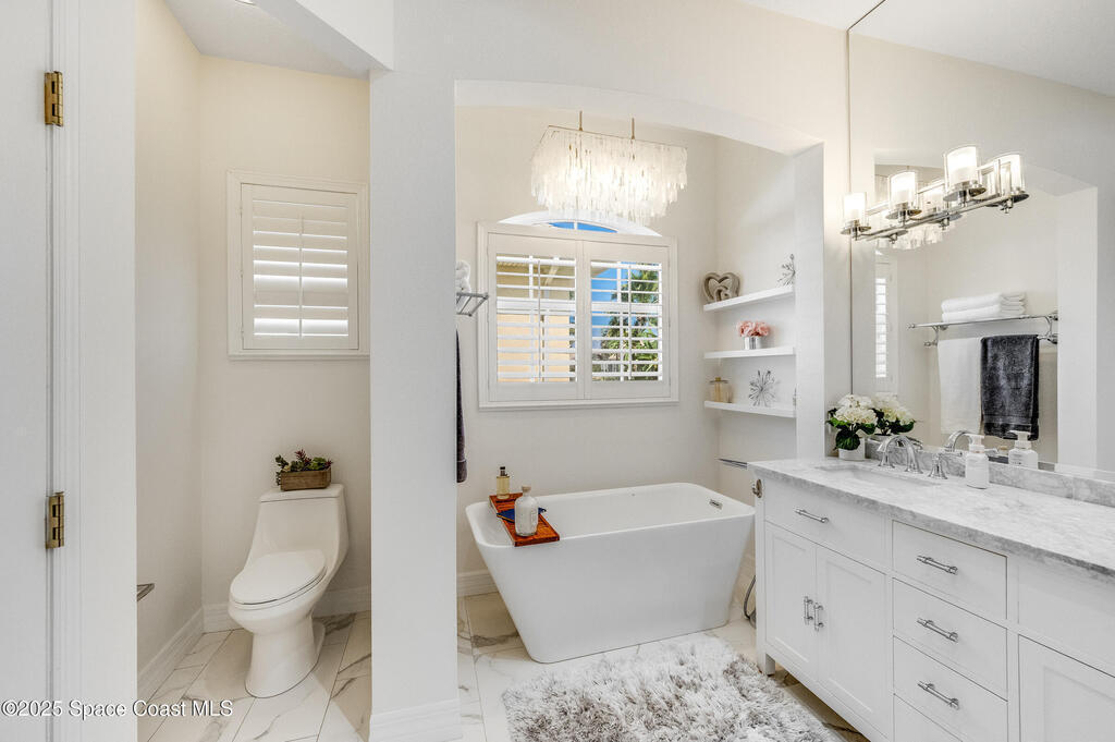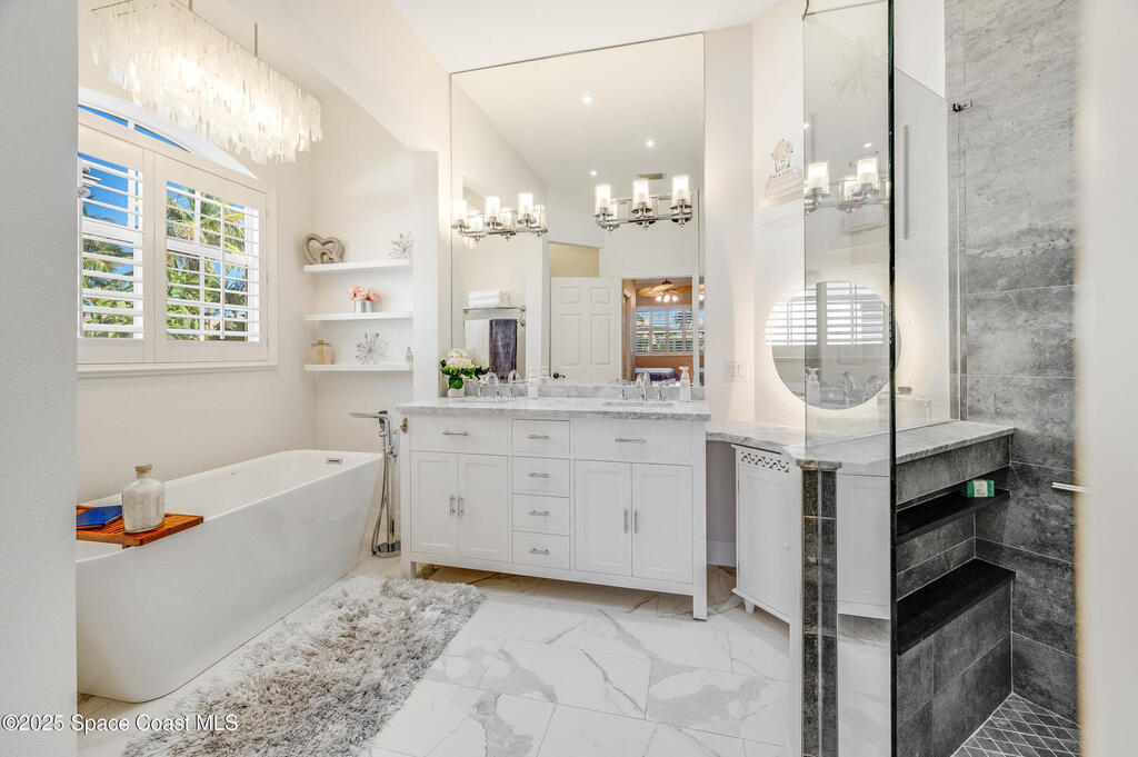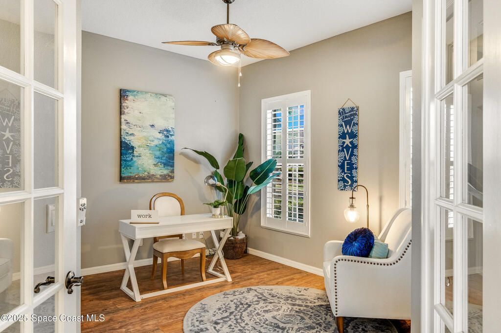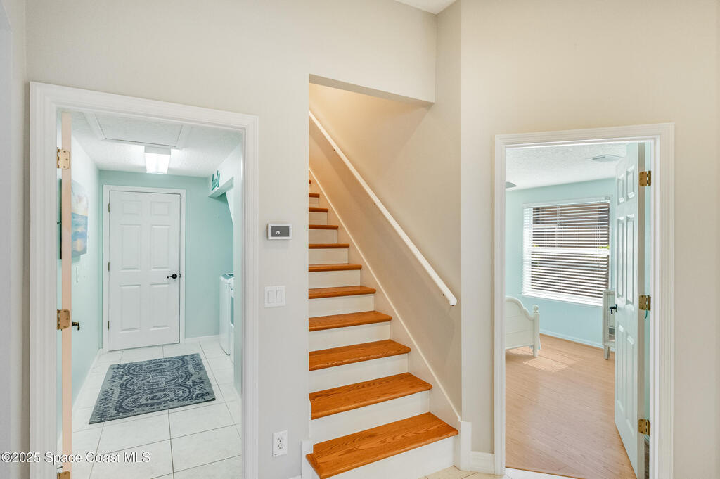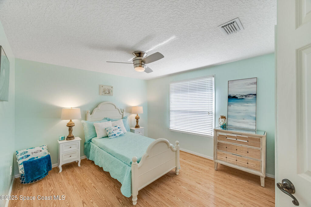 Coastal Living at Its Finest in Indian LandingWelcome to this beautifully updated 4-bedroom, plus a flex room or office, 3-bathroom home located in the highly sought-after gated community of Indian Landing. This pristine neighborhood offers exceptional amenities community pool, a tennis court, and deeded access to both the ocean and river--perfect for enjoying sunrises, sea turtle strolls, or watching rocket launches.Spanning 2,692 square feet, the open and airy floor plan features a ground floor primary suite and an upstairs guest suite, ideal for family or visitors. Some of the highlights include: Remodeled bathrooms with modern finishes Rich cherry wood floors and crown moulding throughout Central vacuum system Extra-wide covered patio Paver stone driveway Plantation shuttersEnjoy peace of mind with a brand new Trane HVAC system, new refrigerator,