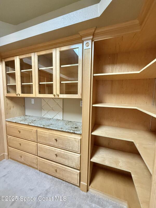 Breakfast Bar , Built-in Features , Butler Pantry , Ceiling Fan(s) , Central Vacuum , Entrance Foyer , Guest Suite , His and Hers Closets , In-Law Floorplan , Open Floorplan , Pantry , Primary Bathroom -Tub with Separate Shower , Primary Downstairs , Split Bedrooms , Vaulted Ceiling(s) , Walk-In Closet(s)
