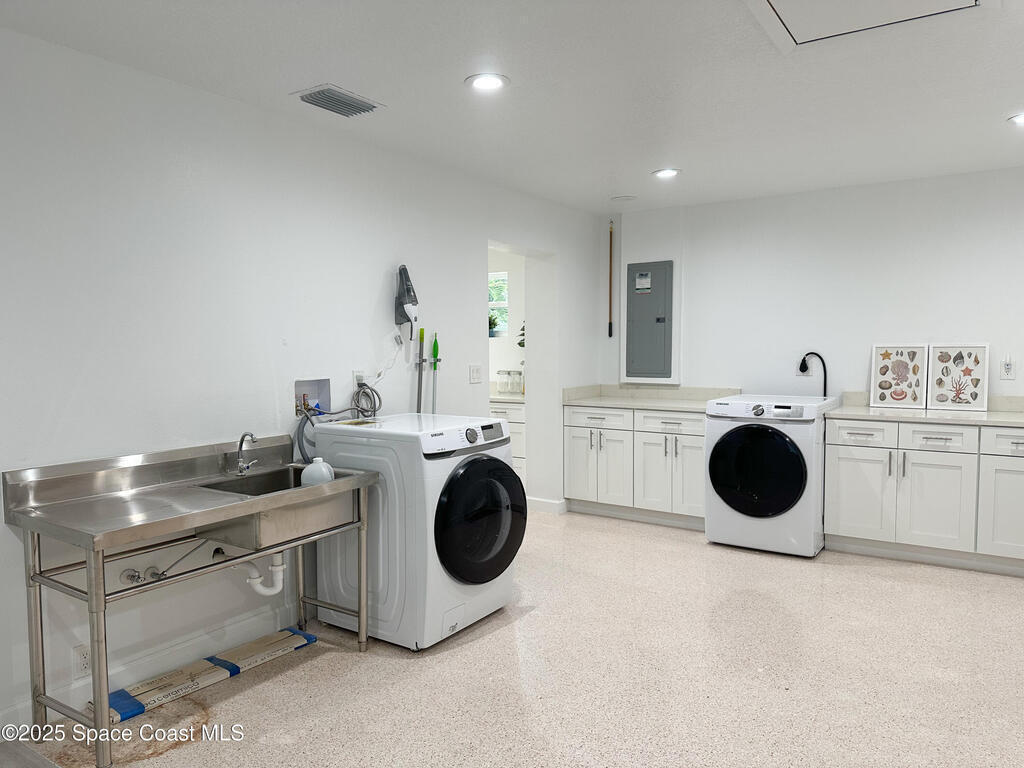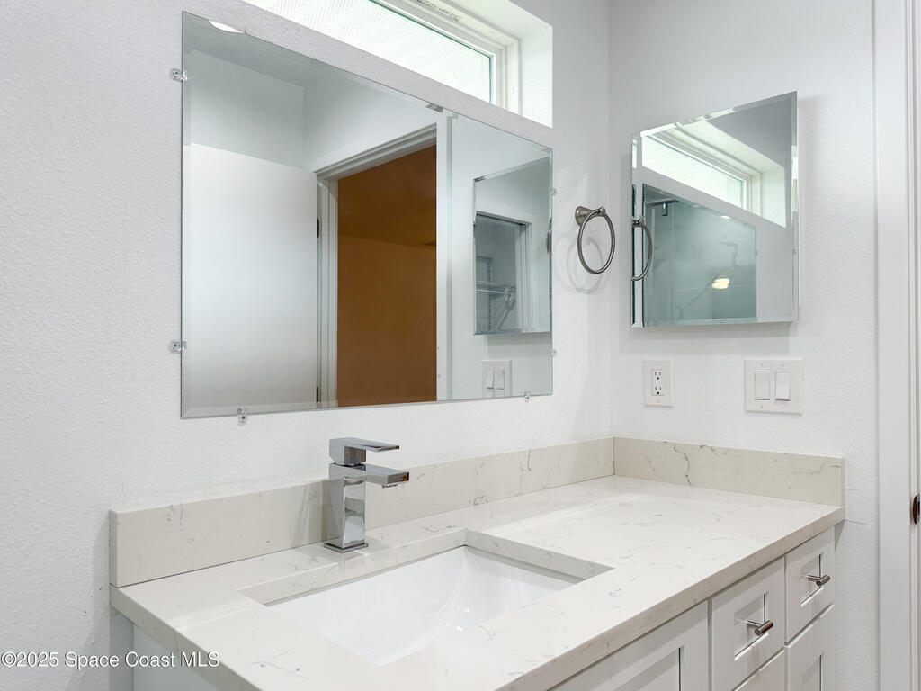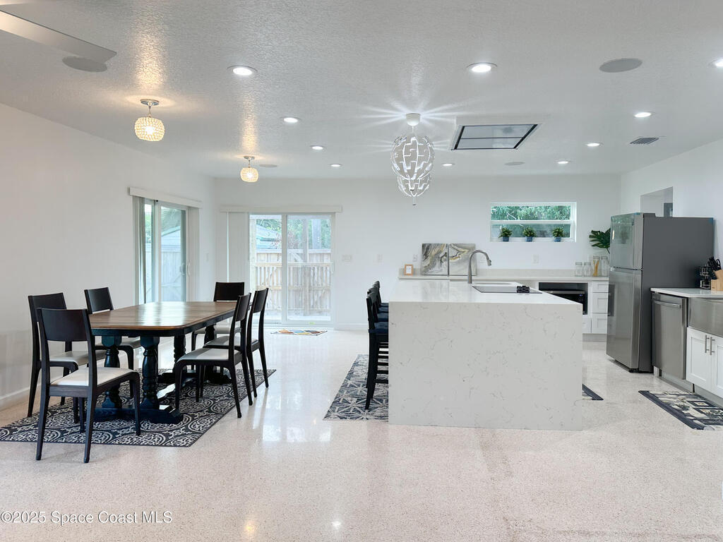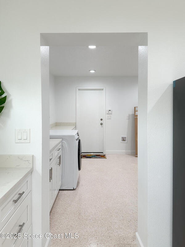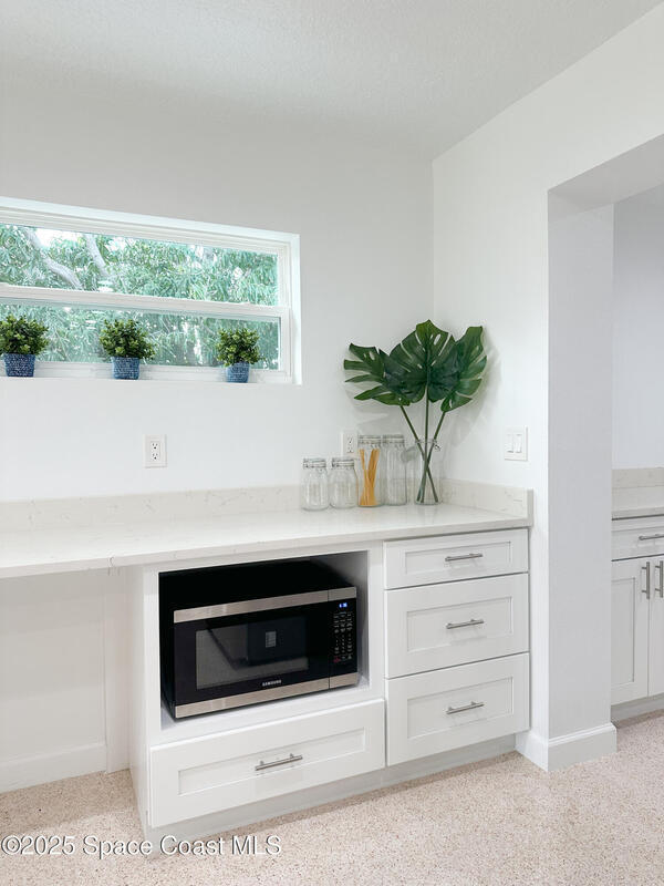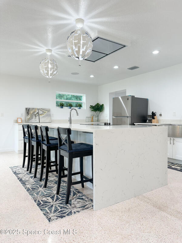 Situated just minutes to the beach, this meticulously renovated home offers a perfect blend of modern living and hurricane resilience. Stripped down to the concrete block and trusses with all new interior framing, roof (2022) with double roof straps, new gutters, exterior stucco and paint, electrical, full HVAC system upgrade with new registers, ducts and returns, hurricane rated fence, new windows and sliding glass doors. Fully re-plumbed with new piping, a larger flow rate potable water line, a new artesian well and water pump to provide abundant water supply for the smart sprinkler system for efficient lawn care. A redesigned floor plan with walls removed to create an open floor plan, expanded entryway, oversized laundry room that could be converted to a bedroom. Brand new kitchen with quartz countertops, custom cabinetry, all new smart appliances, a voice activated faucet, ethernet ports throughout the home. Refinished terrazzo floors, large backyard with room for a pool and more!