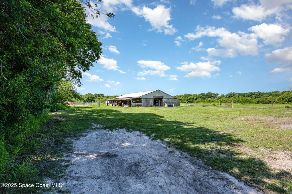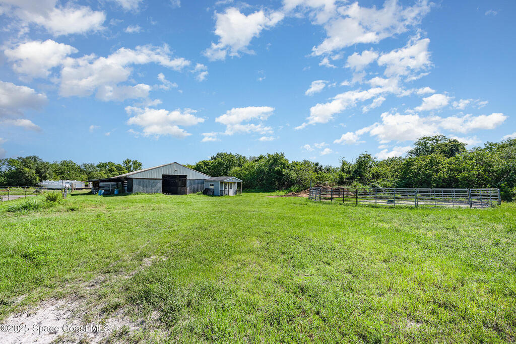 Unique opportunity for equestrian enthusiasts and those seeking a rural lifestyle. Spanning 11.25 acres, this estate is equipped with extensive horse facilities, including a 13-stall barn featuring a tack room, feed room, hay loft, and round pen. The fenced pastures are ideal for grazing, and the barn is fully serviced with water and electricity. The existing 3-bedroom, 2-bathroom manufactured home provides a foundation that can be renovated or replaced with a new manufactured or custom-built home, allowing for personalized customization. Additional amenities include an RV hookup, offering convenience for guests or additional living arrangements. For outdoor enthusiasts, the property boasts miles of dirt roads suitable for trail riding, and is conveniently located near a boat ramp to the Indian River, facilitating easy access to water-based activities. This versatile property combines functional equestrian facilities with the potential for residential development.