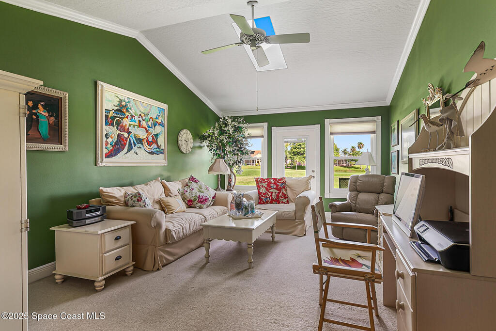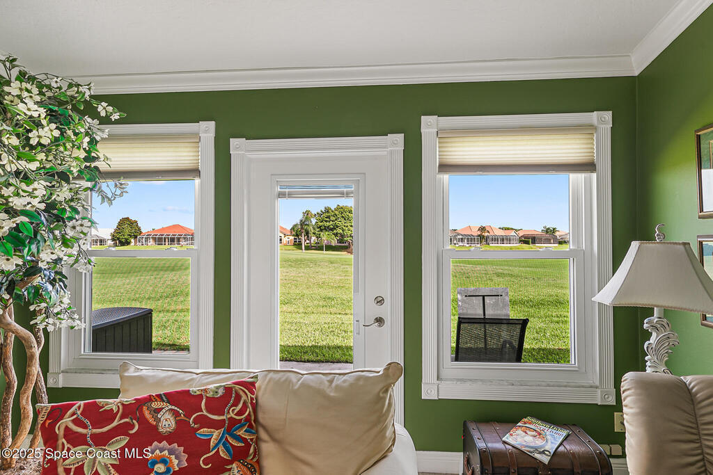 Welcome to this beautifully updated 2-bedroom, 2-bath home in the desirable Quail Point of Suntree--a quiet golf course community known for its curb appeal and peaceful setting. Enjoy stunning golf views from both the front and back, just a short walk from the community pool. Inside, vaulted ceilings and crown molding add charm, while the bright bonus room offers a perfect spot to relax. The kitchen and primary bath were fully renovated in 2023 with modern finishes. Recent updates include a brand-new AC unit and courtyard gutters (2025), impact glass windows (2022), new plumbing (2023), a water heater (2021, warranty until 2027), and a roof replaced in 2020--ensuring comfort and reliability. A spacious 600 sqft double-car garage and a welcoming front courtyard with walk-in storage complete this well-maintained home. With thoughtful upgrades and a prime location, this move-in-ready home is a rare opportunity in one of Suntree's most sought-after neighborhoods.