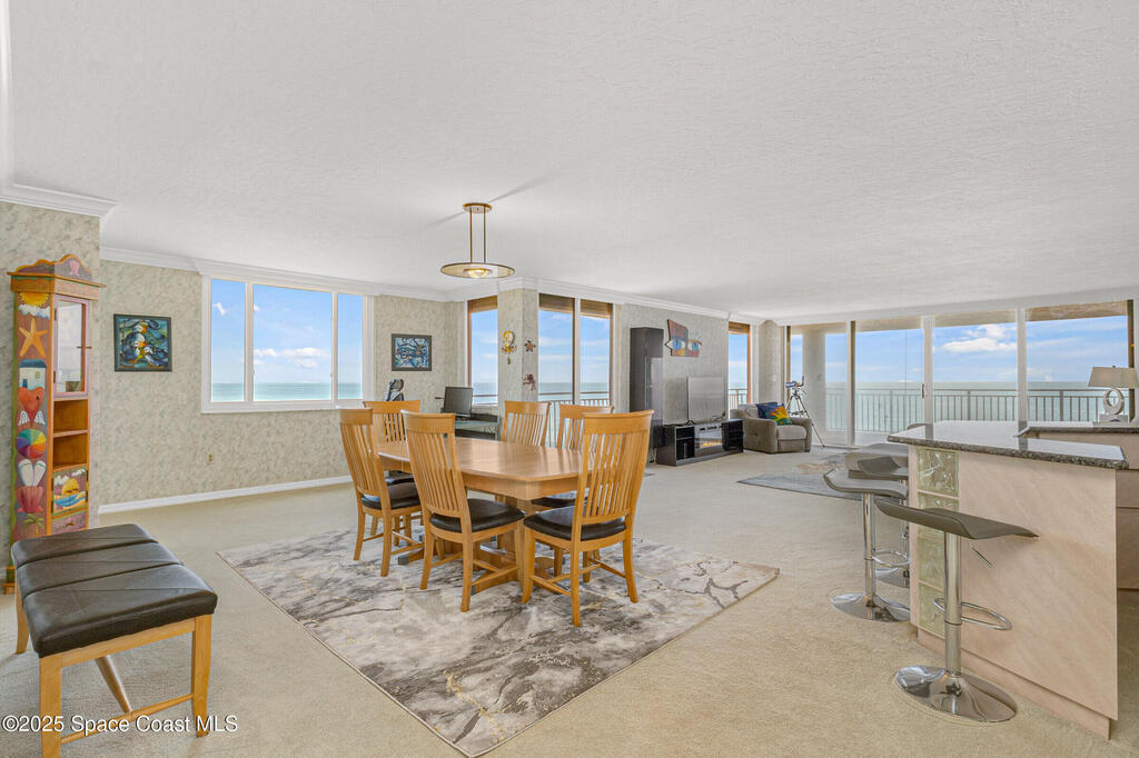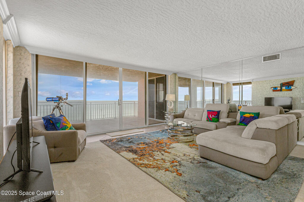 Experience the pinnacle of coastal elegance in this stunning 7th-floor oceanfront corner unit, offering 2,427 square foot of living space under air. With three bedrooms, two and a half baths and panoramic views of the sparkling Atlantic Ocean and Intracoastal Waterway, you can wake to inspiring sunrises on the ocean and sip a happy hour cocktail watching riverside sunsets. Some of the largest balconies in our area, ideal for entertaining, relaxing, dining al fresco or watching awesome SpaceX launches. Situated in the laid back and friendly community of Melbourne Beach, a short drive from great local restaurants, shopping, golf and more. Unit includes two assigned garage spaces plus storage for all your beach gear. Large pool, perfect for soaking up the Florida sunshine. Inground spa, tiki style picnic area, community workout room, secured lobby and private beach access. Rolex shutters for peace of mind, recently replaced balcony railings and new roof coming soon. Fully Furnished!