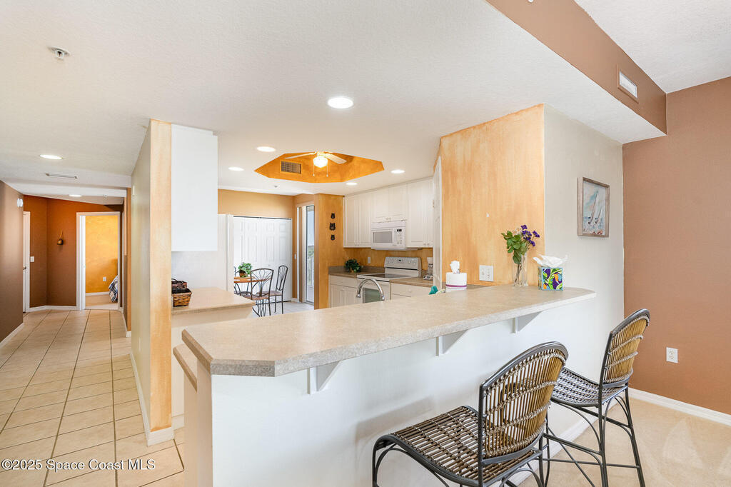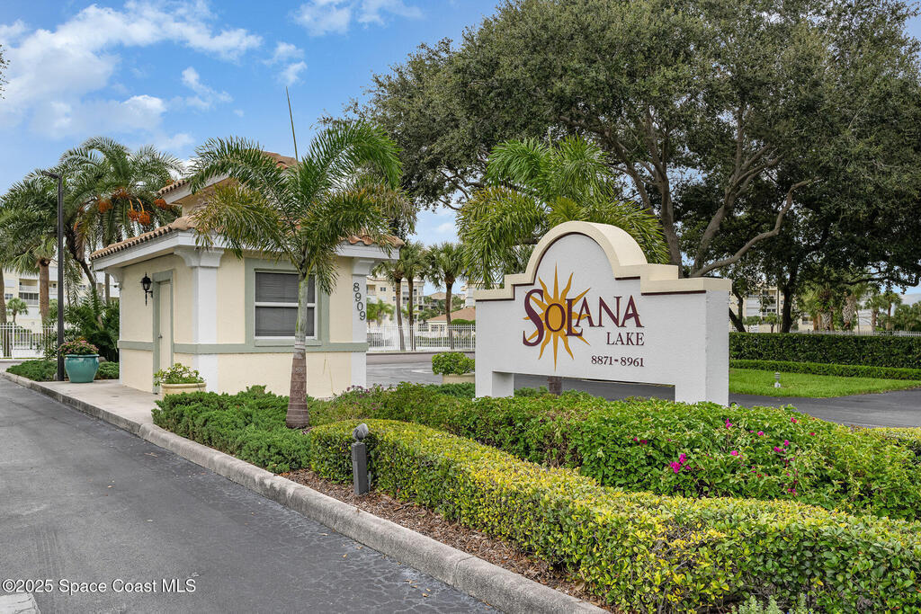 Rare Penthouse Opportunity! Welcome to this rare top-floor penthouse in the exclusive, gated community of Solana Lake. This spacious 3-bedroom, 2-bathroom residence features soaring 10-foot ceilings and offers breathtaking views of the serene lake, sparkling pool, and even a distant glimpse of the ocean. Just steps from the private beach access, enjoy peaceful morning strolls by the shore or relaxing afternoons soaking up the sun. The open eat-in kitchen is perfect for entertaining or Casual dining and a private garage located beneath the building adds both convenience and security. Solana Lake offers resort-style amenities, including Clubhouse, Fitness center, Sauna, Tennis/Pickleball courts, Pool and Jacuzzi, Car Rinse, direct, gated beach access. Just minutes to cruise ships, fishing charters, waterfront dining and entertainment. short drive to Orlando and the attractions.