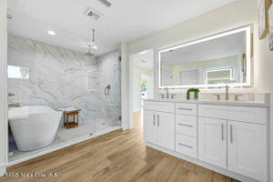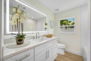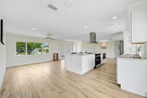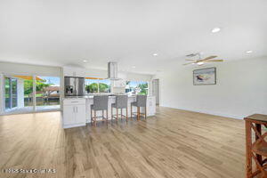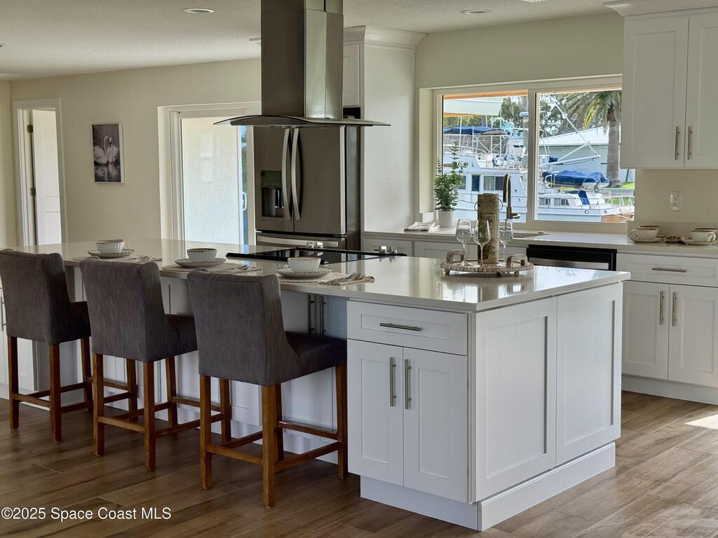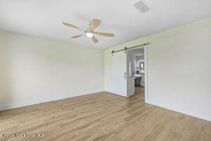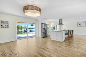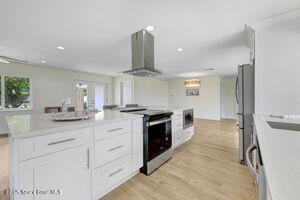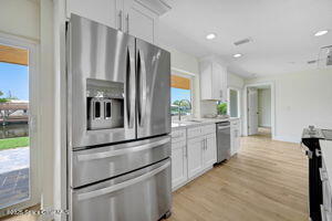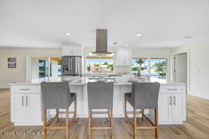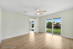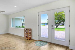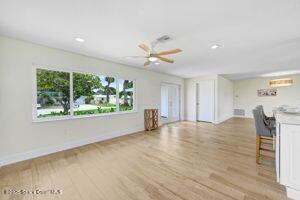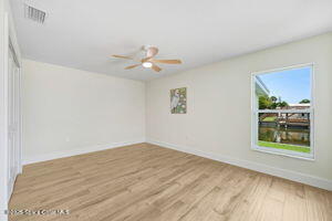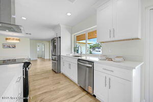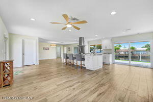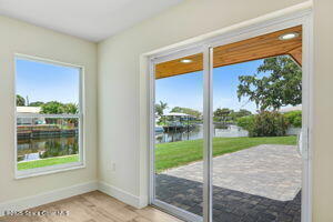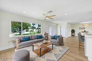 Fully renovated waterfront home (2024/2025) with ocean access via Port Canaveral locks! Located in a quiet cul-de-sac with navigable canal to Banana River. All work permitted: new roof, plumbing, electrical, HVAC, sewer, flooring, kitchen, baths, and more. Open floor plan with quartz countertops, stainless steel appliances, and barn door in primary suite. Spacious walk-in closet and updated bathrooms. Enclosed laundry room under AC. Additional square footage added--buyer to verify. New seawall, paver driveway, back patio, new landscaping, sprinkler system with timer. Freshly painted inside and out. AC in garage closet and on-demand water heater. Move-in ready and built for comfort, style, and Florida waterfront living. No HOA. Enjoy boating, entertaining, and the peaceful surroundings of this beautifully updated home.