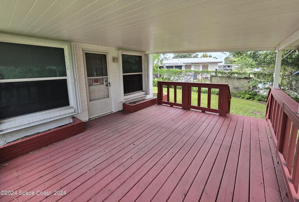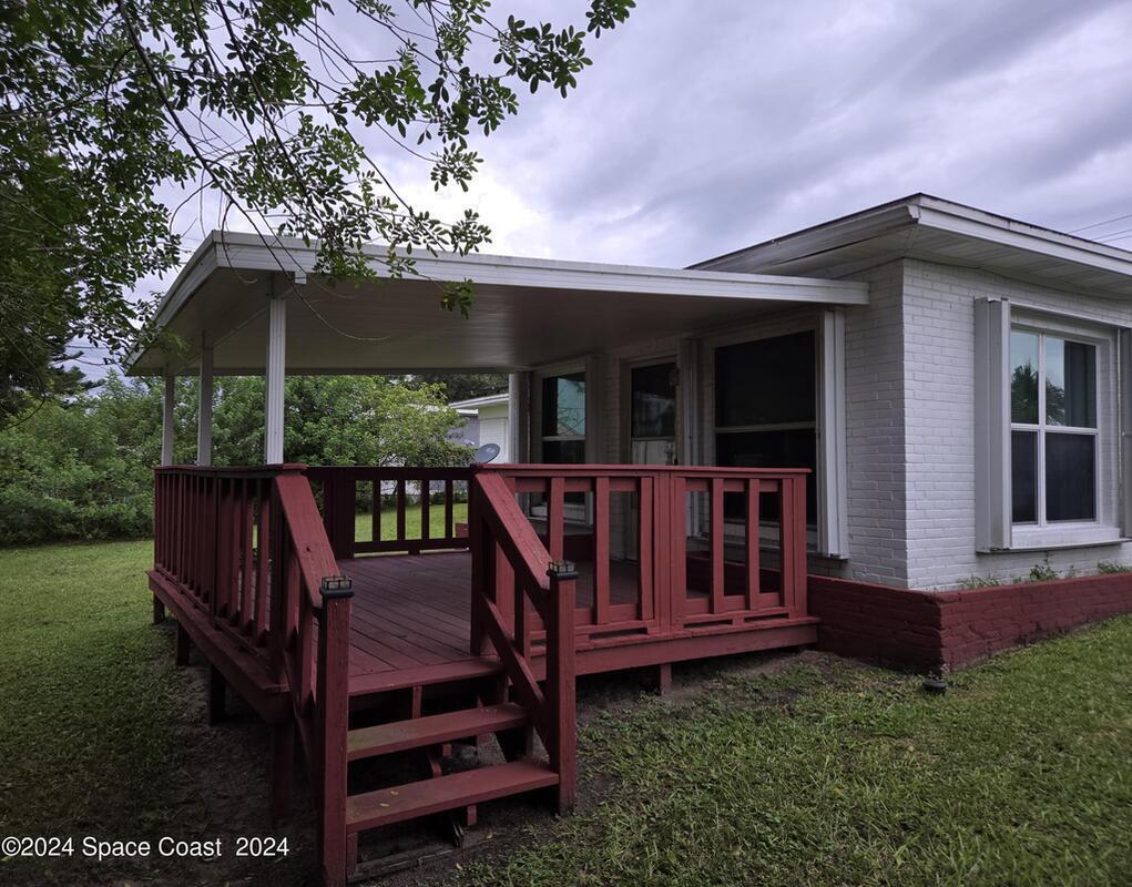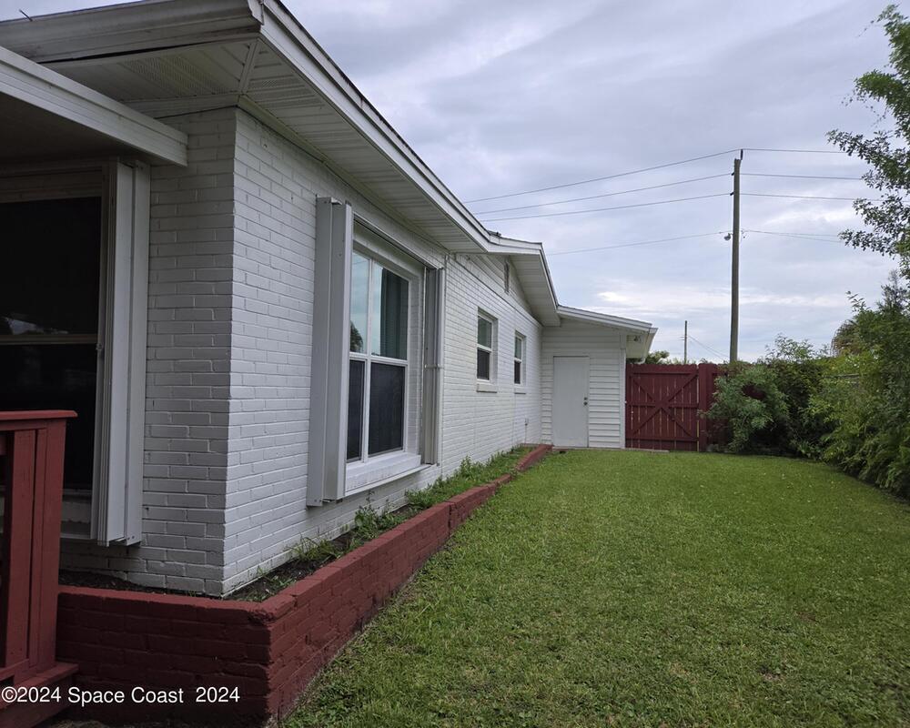 **Buyers Financing fell through so take this opportunity to make this home yours!! ** Welcome to this well maintained 3 bedroom, 2 bath, 2 car garage home located in an established area of south Titusville. Spacious living with an eat in kitchen and room for a small table, nice size living room/dining room with an added family room for extra living space. Move in ready or update to your liking. Home includes a rear Fenced in yard with an extra storage room/work shop with electricity. UPDATED hurricane proof windows with Storm shutters on 4 of the rear windows, 2022 Rheem water heater, 2024 HVAC unit, 10 yr old roof, stackable washer & dryer and a covered wood deck for anytime BBQ's. A nice benefit to the Buyers is that the Sellers have recently paid off the Solar panels in full which will allow the Buyers to take advantage of VERY LOW & STEADY ELECTRICAL COSTS