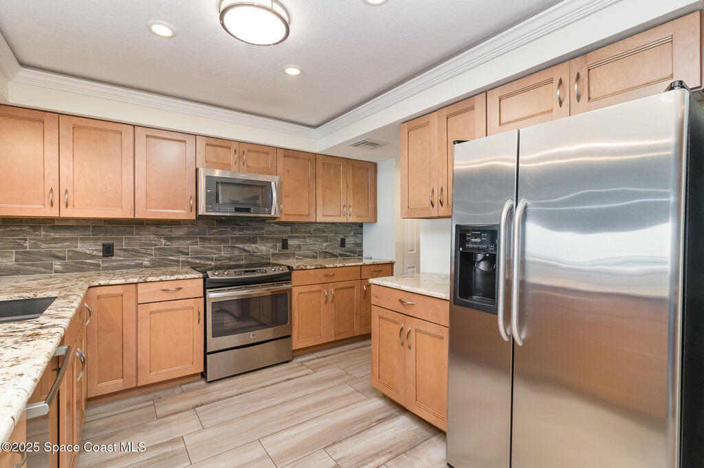 Enjoy stunning riverfront views from this beautifully updated 3 bedroom, 2 bath condo! Featuring an open floor plan, modern kitchen with stainless steel appliances, and spacious living area that opens to a private balcony overlooking the water. The primary suite offers a walk-in closet and en-suite bath, while the second and third bedrooms are perfect for guests or a home office. Located in a well-maintained community with a private pool, kayak launch and adjacent to the Melbourne Marina for a vibrant waterfront atmosphere. Just walking distance to historic downtown Melbourne, dining and shopping. Waterfront living at its best.