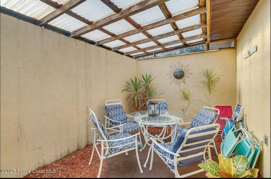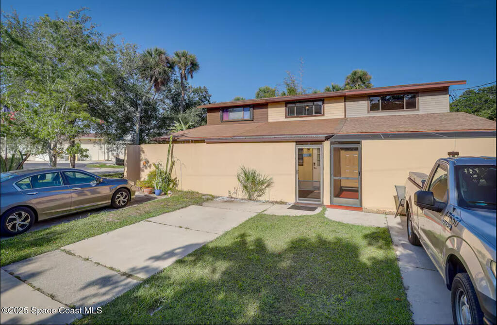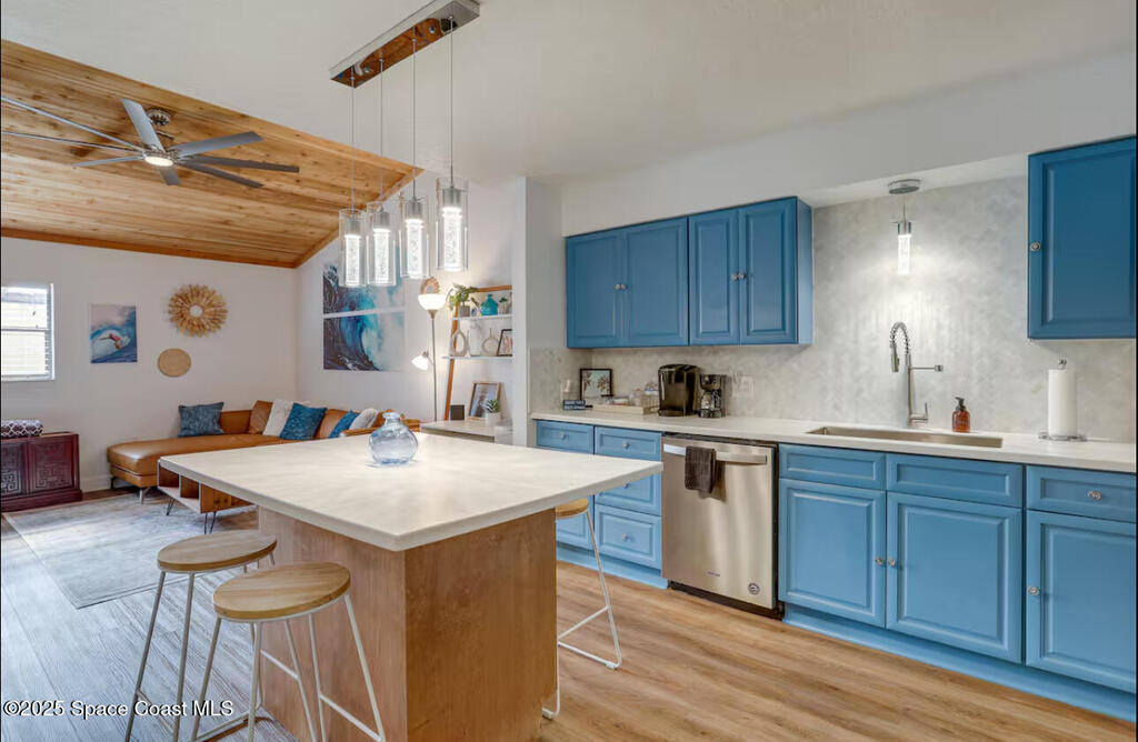 INCOME-PRODUCING TOWNHOME IN CAPE CANAVERAL...NO HOA!!! This is a beachy and turn-key 2/2 located a mile from Port Canaveral and less than a mile to the beach. Renovated in 2022, it's been a successful short-term rental in between owner use. The home offers two en suites for privacy -- one upstairs and one down. The vaulted pine ceilings set the cool coastal vibes with other natural pine accents, and the blue painted cabinetry with Grecian white herringbone backsplash add a beautiful backdrop to the open floorplan. There is a stacked washer and dryer in the unit. Furnishings convey at full price. Convenient to Kennedy Space Center, Orlando International Airport, beaches, restaurants, and great schools.