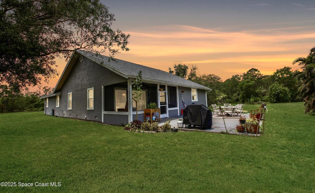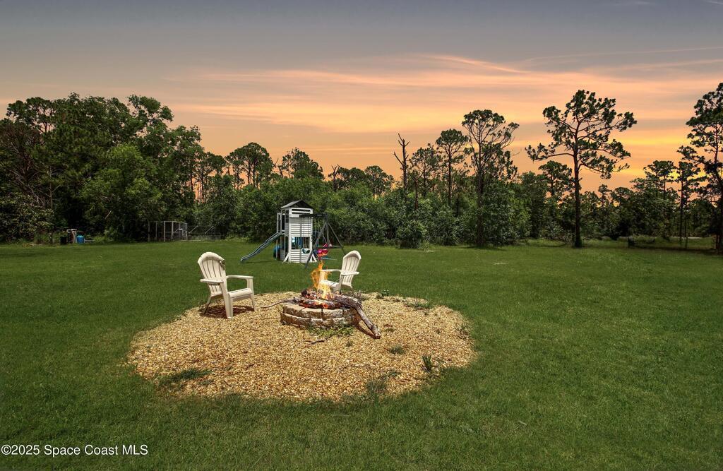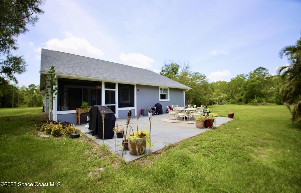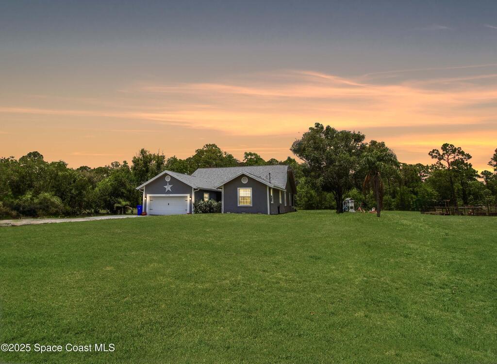 Rare Find & PRICED TO SELL!!! 4BED 2.5BATH home with 2 Car Garage on 5Acres featuring 2Lakes and a detached 4Bay Workshop/Garage. Horses allowed! Plenty of room for RV, Boat, ATVs & More. Newer roof, updates & rustic charm. Covered screened entry, open living with split floor plan. Spacious Kitchen with white shaker cabinets, granite counters, subway tile and L Shaped Island/Breakfast Bar with Butcher's Block Top. Full Dining area. Living Room has a tray ceiling & sliders to the rear Screened Porch. Inside laundry with utility sink, cabinets & folding countertop. Extended Primary Suite with sitting area, walk-in closet, and barn door to en suite Bath with dual sinks & walk-in shower. Guest bath with tub/shower combo. All Appliances, ceiling fans, blinds, alarm & garage opener. Exterior extras: long driveway, fire pit, fenced garden with lighting, chicken coop & rear patio. Attached Garage currently set up as a man cave w/custom bar(EZ to convert back). Enjoy the Fellsmere lifestyle