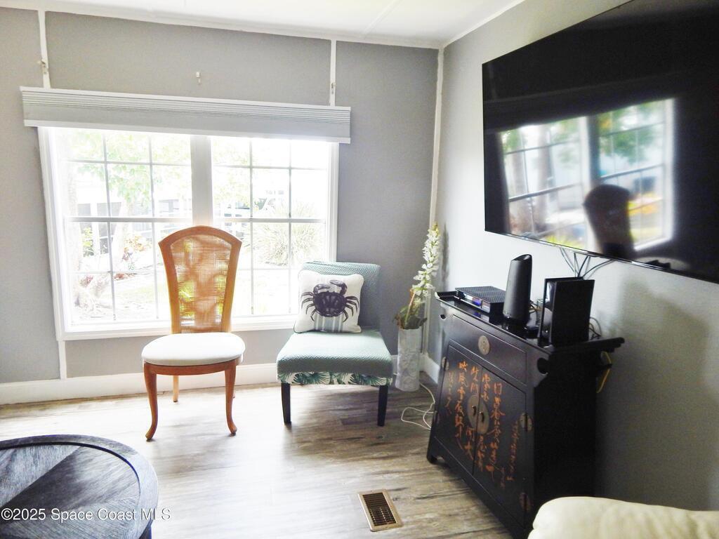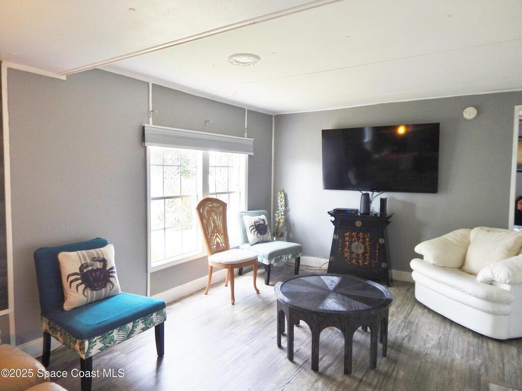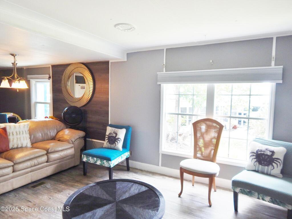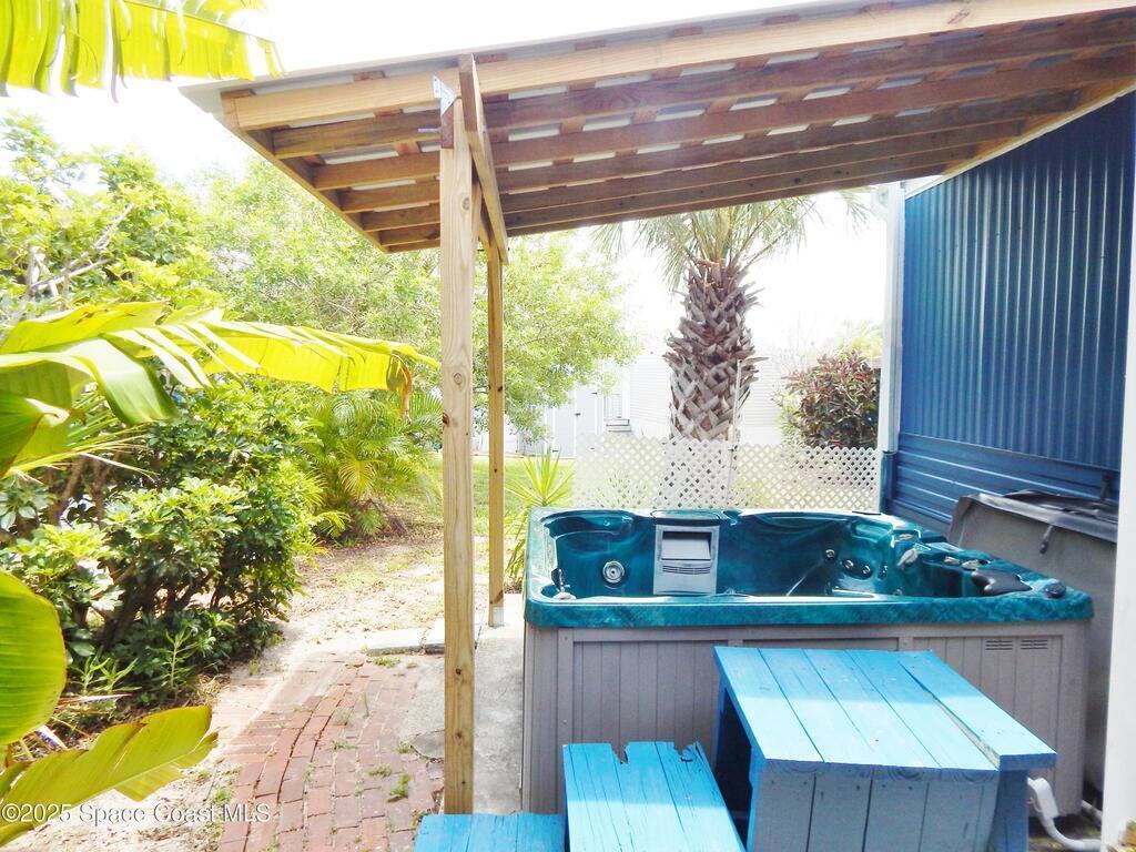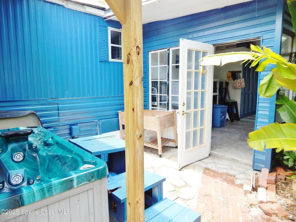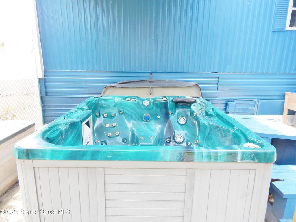 2 Bed 2 bath in Palm Bay Estates 55 and over waterfront community. New paint inside and out, new pergola installed over jacuzzi and back part of Floria room roof has been replaced. 2022 new hot water heater, new A/C thermostat installed, kitchen tile floor 2019, counter tops backsplash and appliances replaced 2013/2014. 2 enclosed patios perfect for extra storage and entertaining.