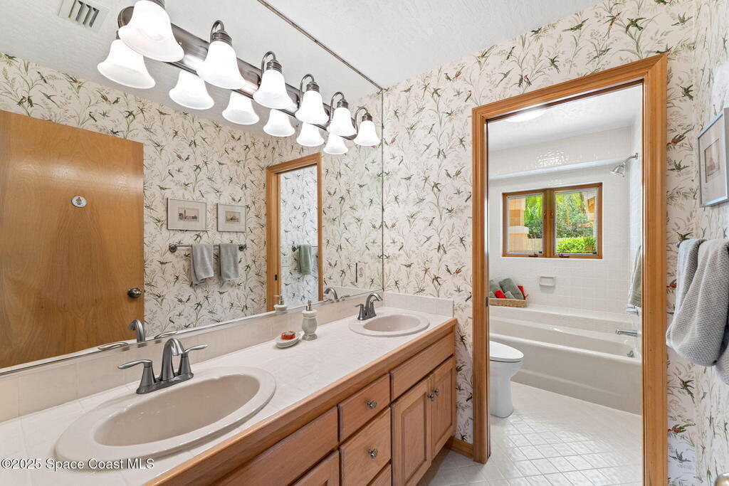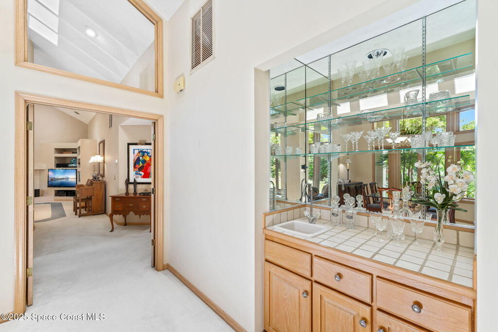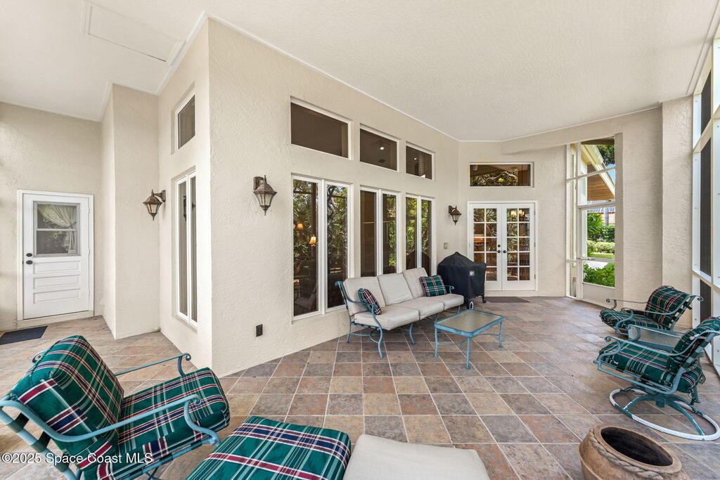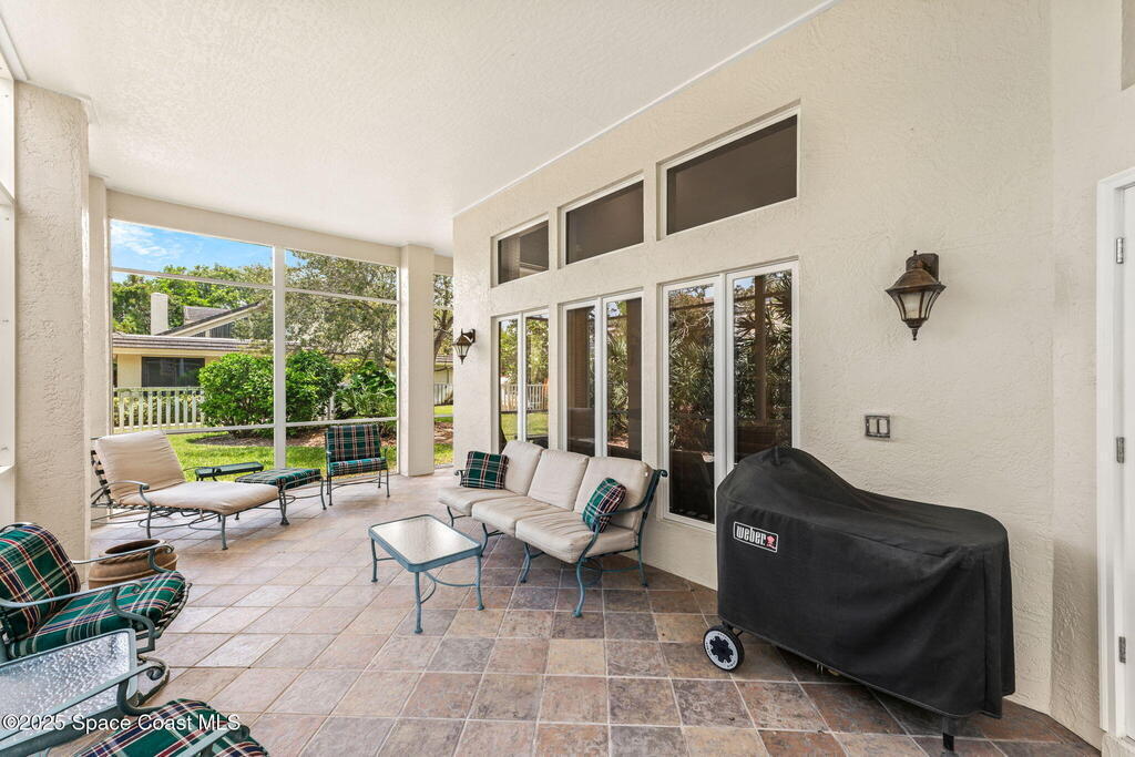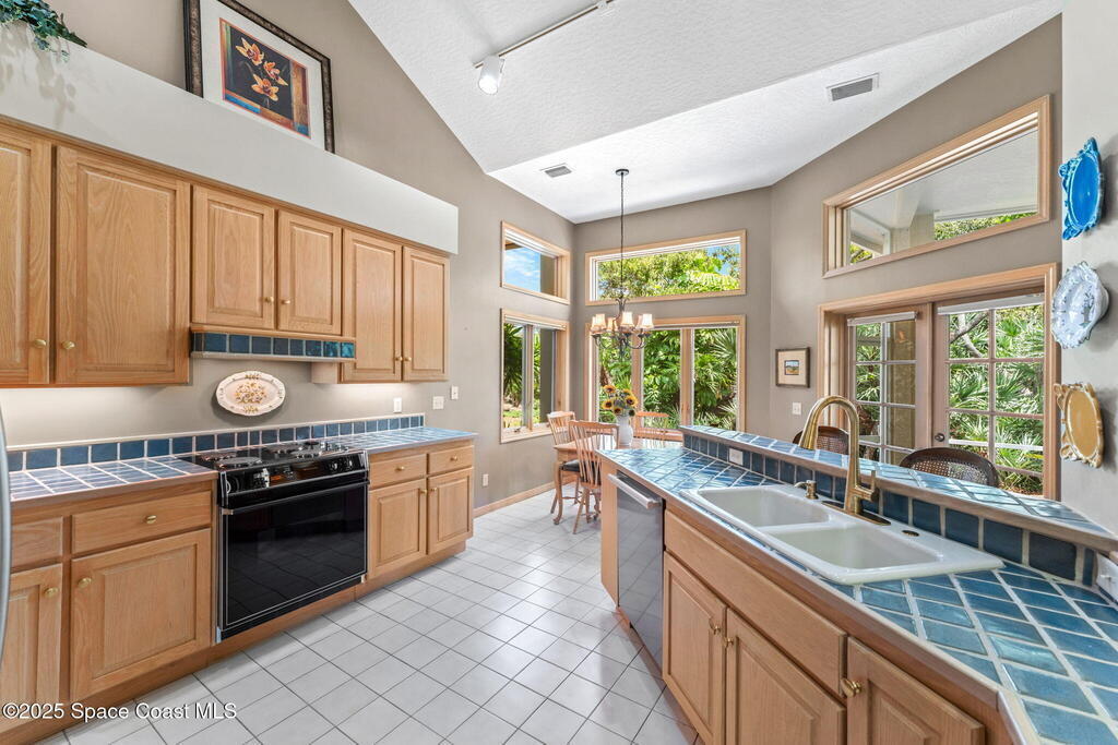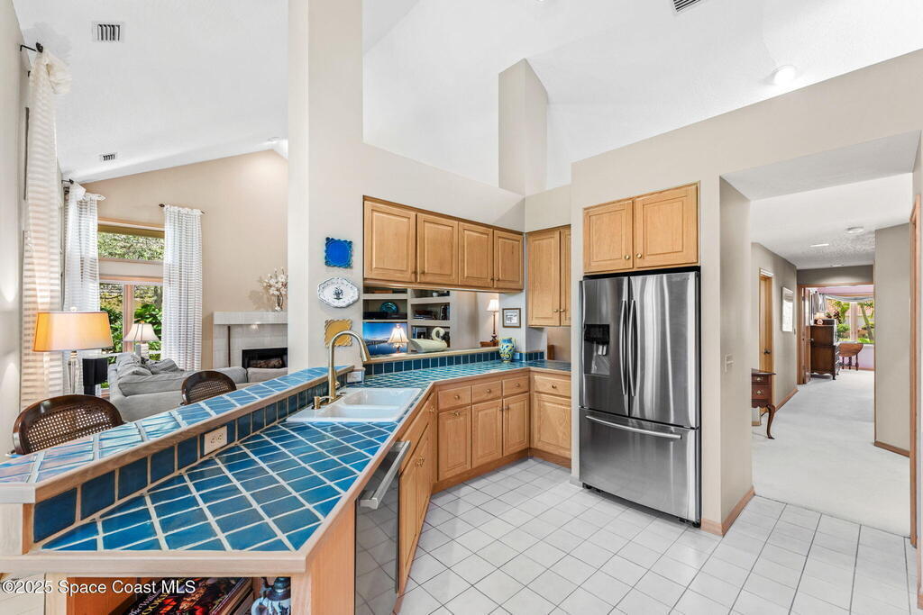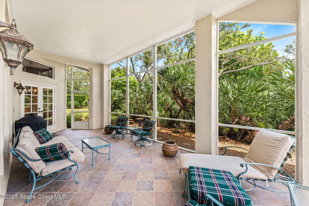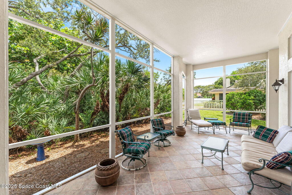 Custom-designed and now offered by its original owner, this home sits on one of the premier lots in the Rio Villa subdivision, elevated, quiet, and surrounded by nature. Inside, the thoughtful split floor plan creates flexibility for dual living, complete with dual HVAC systems for added comfort and separation. Generously sized rooms, high ceilings and wide Pella casement windows fill the home with natural light, framing peaceful views in every direction.Crafted with enduring materials from the clay tile roof to the solid block construction, every element reflects long-term quality and care. The kitchen showcases artisan tilework and opens to the heart of the home, while the expansive screened lanai and patio stretch across the rear, perfect for morning coffee, quiet afternoons, or catching the ocean breeze in the evening