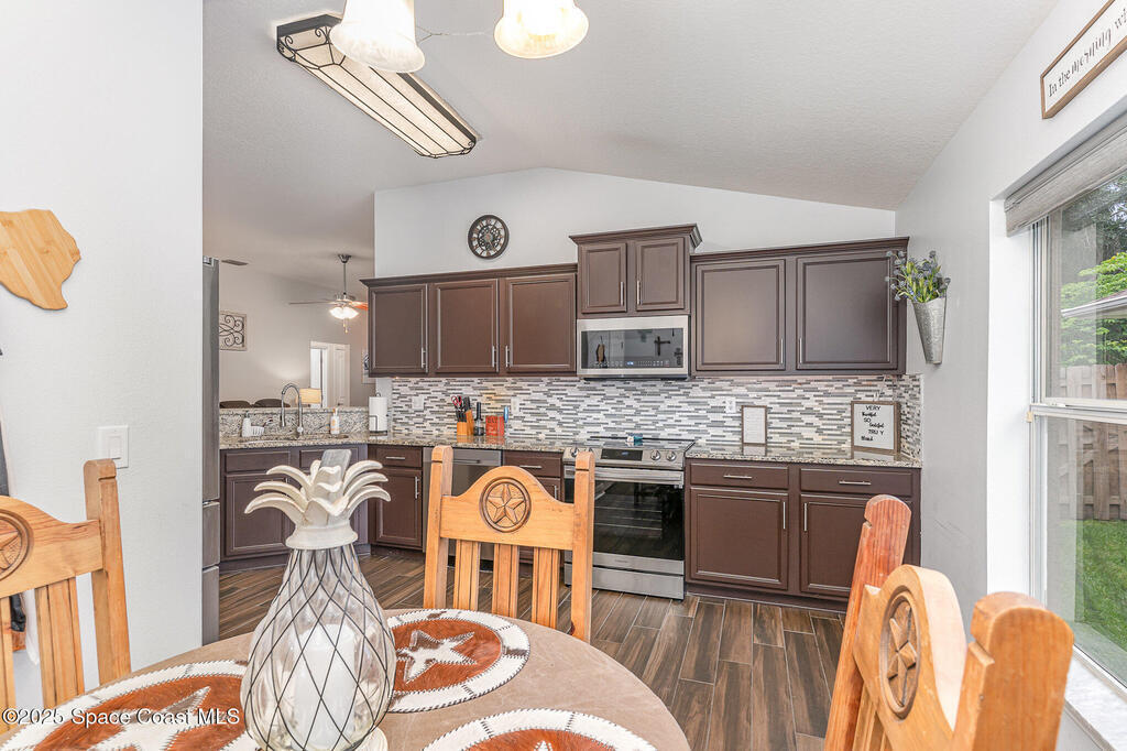 Breakfast Bar , Breakfast Nook , Ceiling Fan(s) , Eat-in Kitchen , Entrance Foyer , His and Hers Closets , Open Floorplan , Primary Bathroom -Tub with Separate Shower , Primary Downstairs , Split Bedrooms , Vaulted Ceiling(s) , Walk-In Closet(s)
