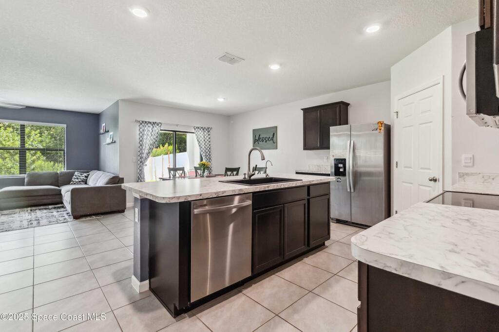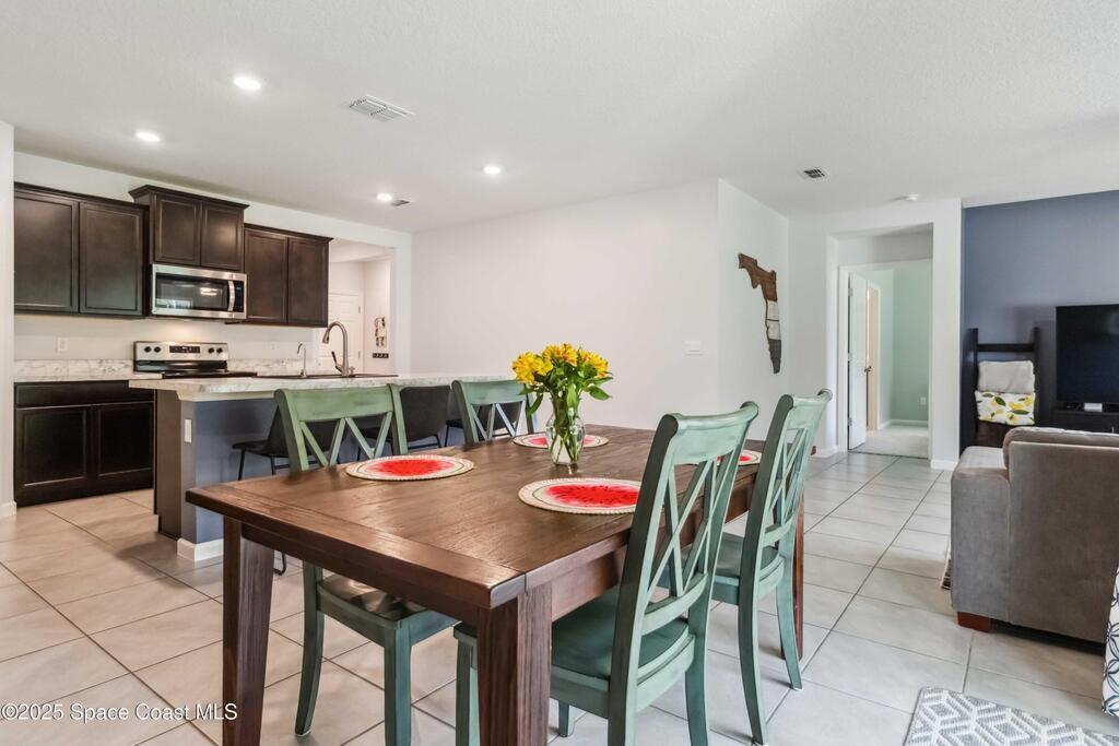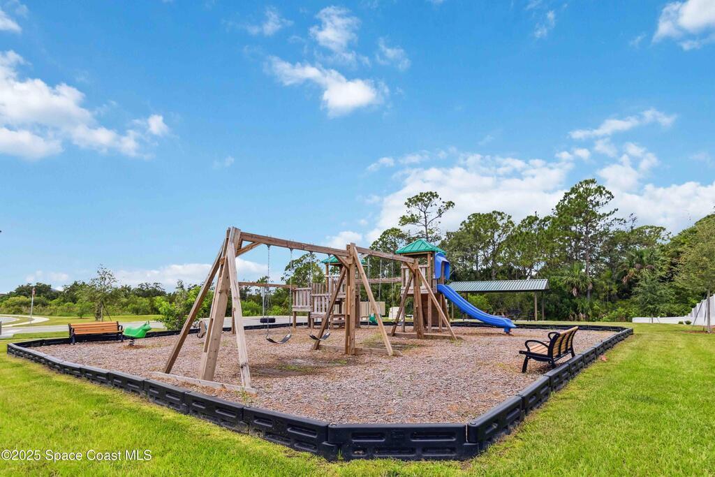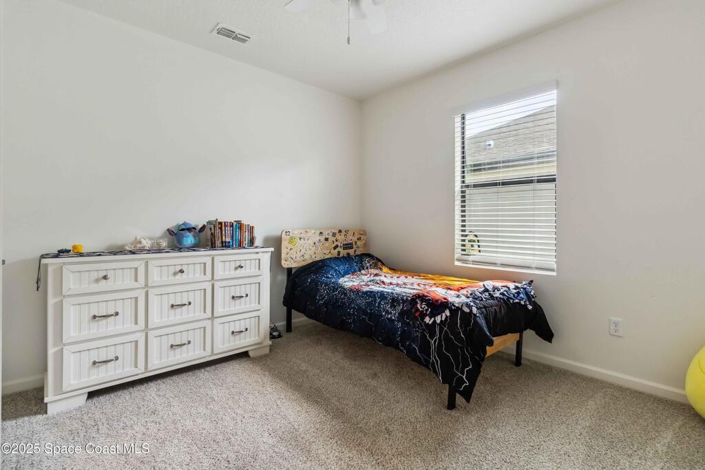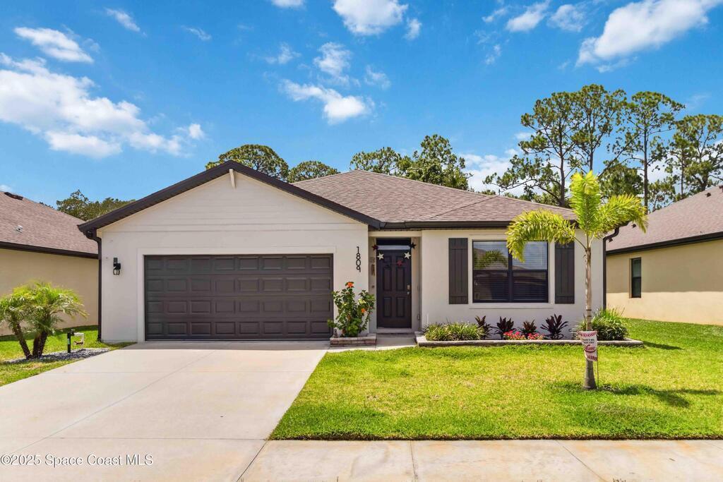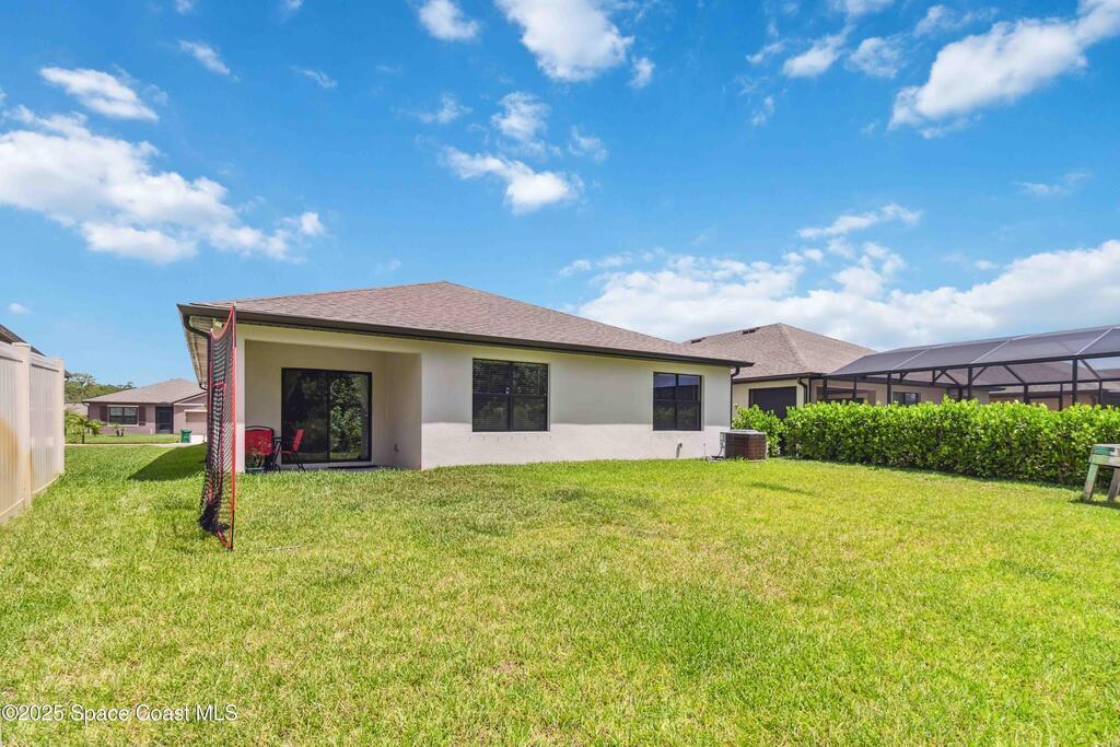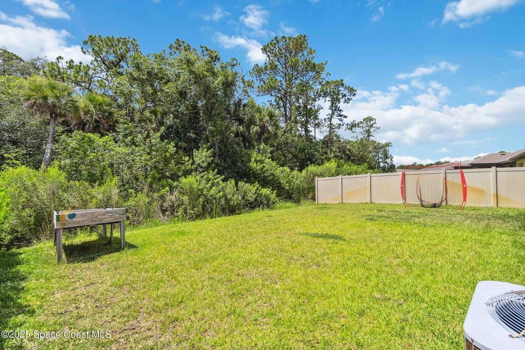 Move-in ready 4-bedroom, 2-bath home in Adamson Creek community. Enjoy a private backyard with conservation views!! Split floorplan layout provides privacy, while the kitchen shines with a center island, stainless steel appliances, and a walk-in pantry--perfect for cooking and gathering. The spacious primary suite features dual sinks, a walk-in shower, and generous closet space. Recent upgrades include fresh interior/exterior paint and NEW carpet (May 2025) on all bedrooms, gutters (Feb 2023), and lush new sod in front and back. Enjoy community perks like a sparkling POOL, playground, grill area, fishing dock and a peaceful nature trail. All just minutes from Kennedy Space Center, beaches, and everyday essentials. This is Florida living with comfort, updates, and location all in one. Bundled service pricing available for buyers. Connect with the listing agent for details.