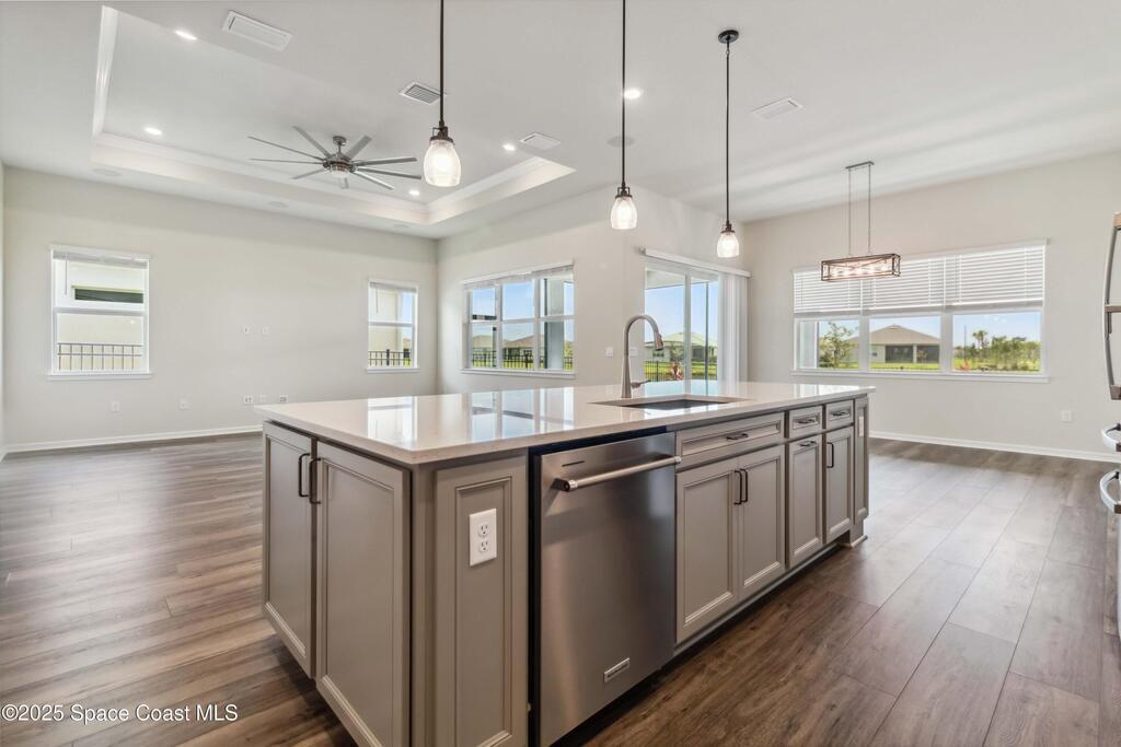 Exquisite 3BR/3.5BA Lakefront Home - Popular Renown Model in Premier 55+ Del Webb Community - Viera, FLWelcome to your dream home in the highly sought-after Del Webb at Viera, a luxurious 55+ community offering resort-style amenities and an unbeatable lifestyle on Florida's Space Coast.This spacious and highly desirable Renown model features 3 bedrooms, 3.5 bathrooms, and is ideally situated on a premium corner lot with stunning lakefront views. Each bedroom boasts its own en suite bath, offering privacy and comfort for residents and guests alike.Step inside to find high ceilings, luxury vinyl plank flooring throughout, and custom closets in every room--including a beautifully designed custom pantry. The heart of the home is the gourmet kitchen, featuring quartz countertops, a 5-burner gas stove, two ovens, and a Maytag full-house water filtration system--perfect for those who love to cook and entertain.