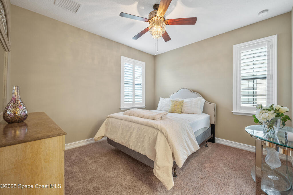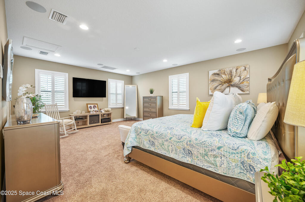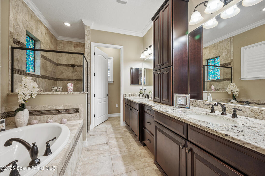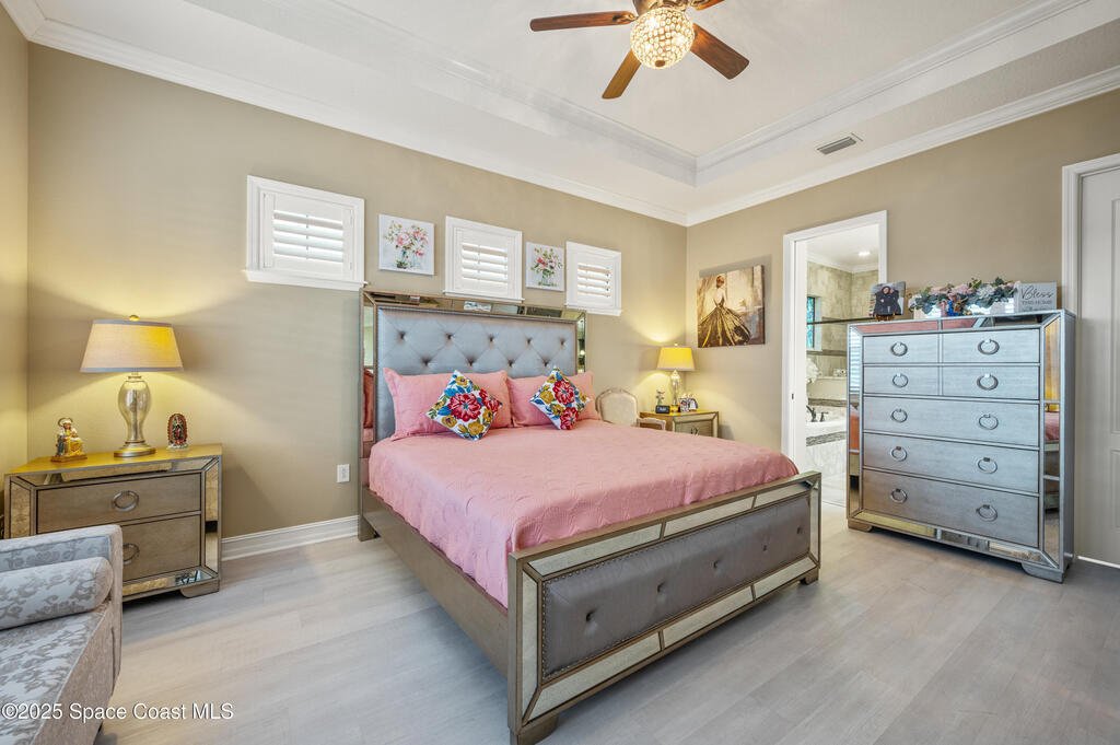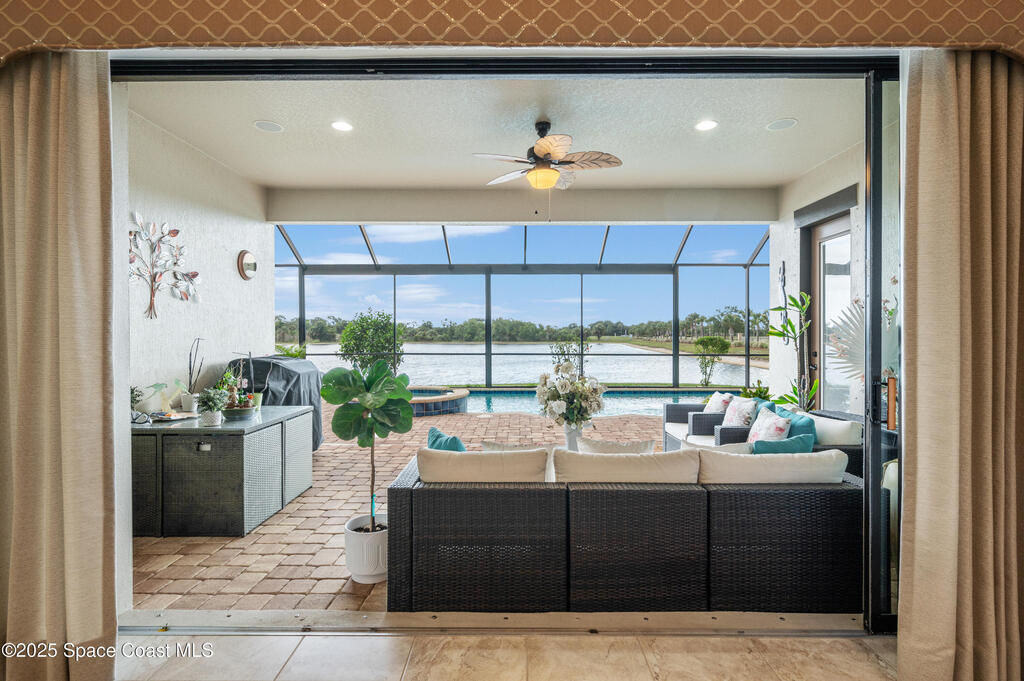 Former model home with sweeping million-dollar lake views. Welcome to luxury living in one of Viera West's most sought-after locations. Perfectly positioned on one of the largest lakes in the area, this exceptional property offers unobstructed sunrise views across the water and preserve. Ensuring total privacy with no rear neighbors ever. From the moment you arrive, the stunning curb appeal and expansive paved driveway reflect the impeccable care and attention this home has received. Inside, you'll discover a level of cleanliness, maintenance, and pride of ownership rarely seen. Every surface shines. Every detail feels intentional. The thoughtfully designed floor plan features four bedrooms, each with its own en suite full bath--ideal for multi-generational living or hosting guests in complete comfort. The master suite is a true retreat, offering panoramic lake views, a custom walk-in closet, and a spa-inspired bath. Ceiling-height tiled shower, soaking tub, soft-touch dual vanities