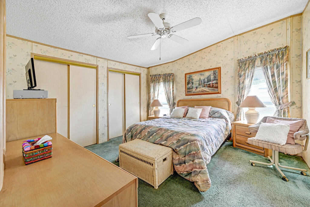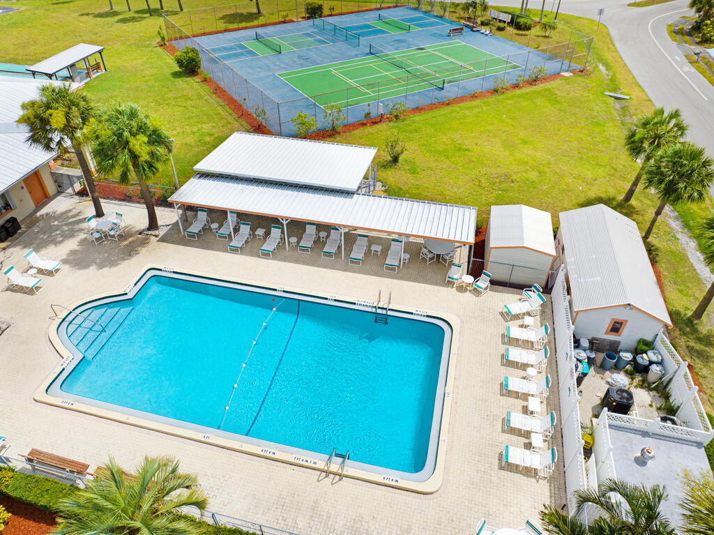SUPER SPACIOUS Located in 55 plus community beautifully maintained. FURNISHED 2 bed/ 2 bath double wide with split plan. Convenient to shopping/banking/medical facilities. Screened in patio, interior washer and dryer, NEW a/c inside and out 2025, Large heated community pool, air conditioned clubhouse, rec areas. Lots of planned activities. ONE TIME MEMBERSHIP OF $1,500 is PAID. easy to show.