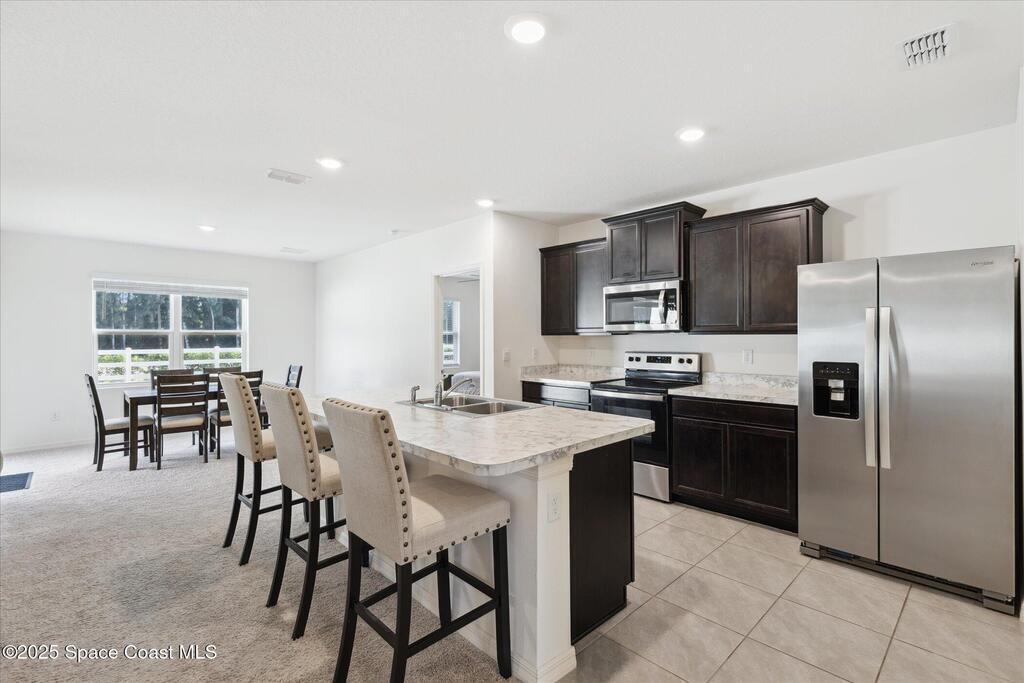 ASSUMABLE VA MORTGAGE! Located in the desirable Harvest Landing community, this 3-bed, 2-bath home offers an open-concept layout perfect for everyday living and entertaining. The kitchen features stainless steel appliances, ample cabinet space, a large pantry, and an island ideal for gathering. The oversized living room and split floor plan provide comfort and privacy, with a spacious primary suite and walk-in closets. Enjoy your morning coffee on the covered patio overlooking a private backyard--NEW FENCE being installed before closing! Community amenities include a pool, scenic walking paths, and a welcoming neighborhood feel. Just 8 min to Cocoa Village, 20 min to the beach, and 37 min to Orlando International Airport. Sellers are motivated and ready to make a deal--schedule your showing today!