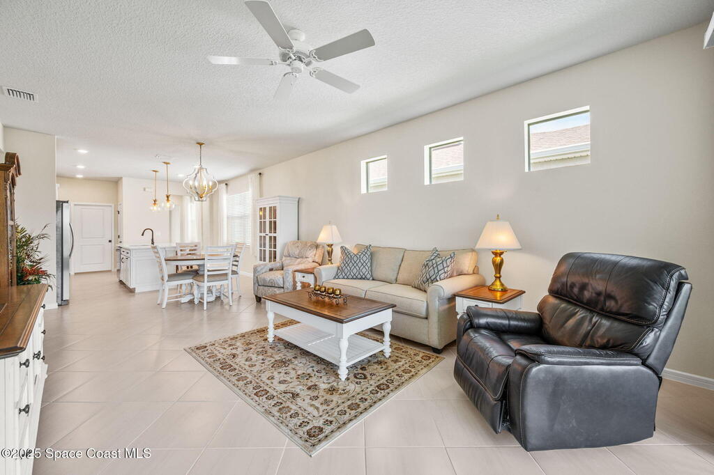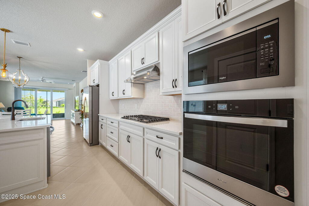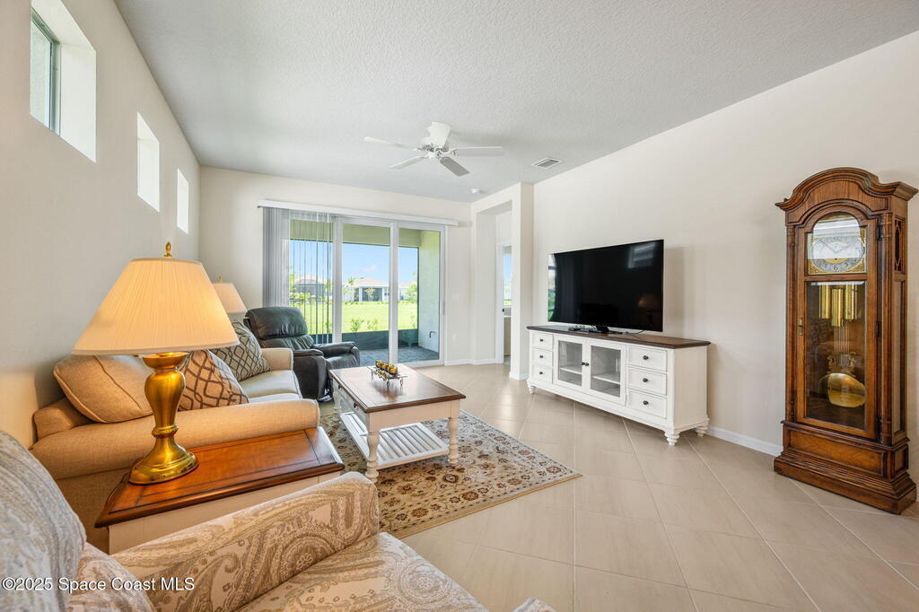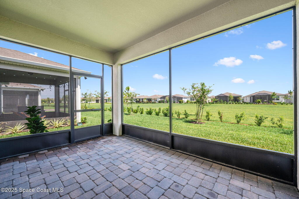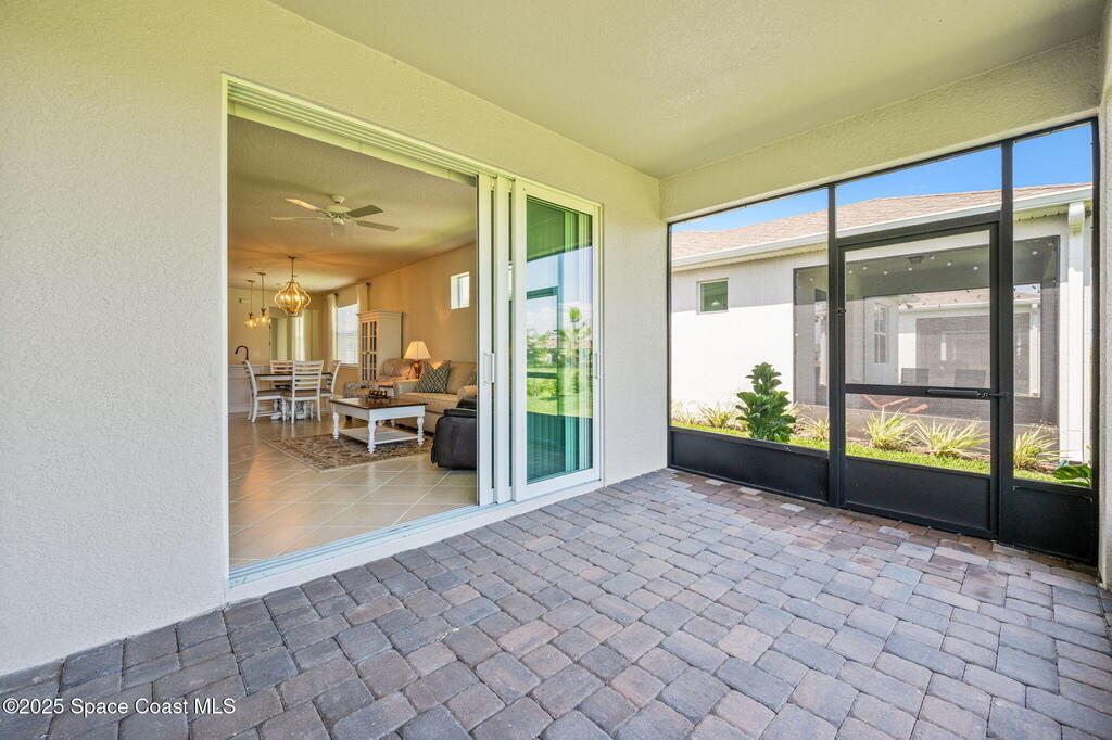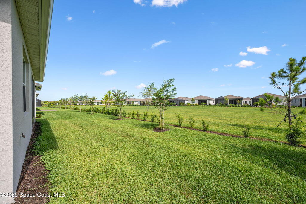 HUGE price Reduction! Stunning 2023 built property in the 55+ premier gated community of Del Webb at Viera. This property features a gourmet kitchen with white 42'' soft-close Aristrokraft cabinets, gas cooktop, stainless appliances, quartz island seating, pantry. The spacious primary suite features a walk-in closet, large walk-in shower, and double sinks. Walk-in shower at secondary bath. Triple sliding doors open to a screened-in covered lanai with beautiful garden views. IMPACT WINDOWS, attic storage w/pull down stairs, glass insert at front door, utility sink in garage, gutters, and paver driveway. Enjoy great lifestyle here at Del Webb as your all-inclusive landscaping & irrigation are included in your monthly HOA fees. There is a Lifestyle House for use as temporary Amenity Center. Also your monthly fee includes complimentary unlimited ''family membership'' at Duran Golf Club on the Par Three Course to each adult resident member of the lot & full time lifestyle coordinato