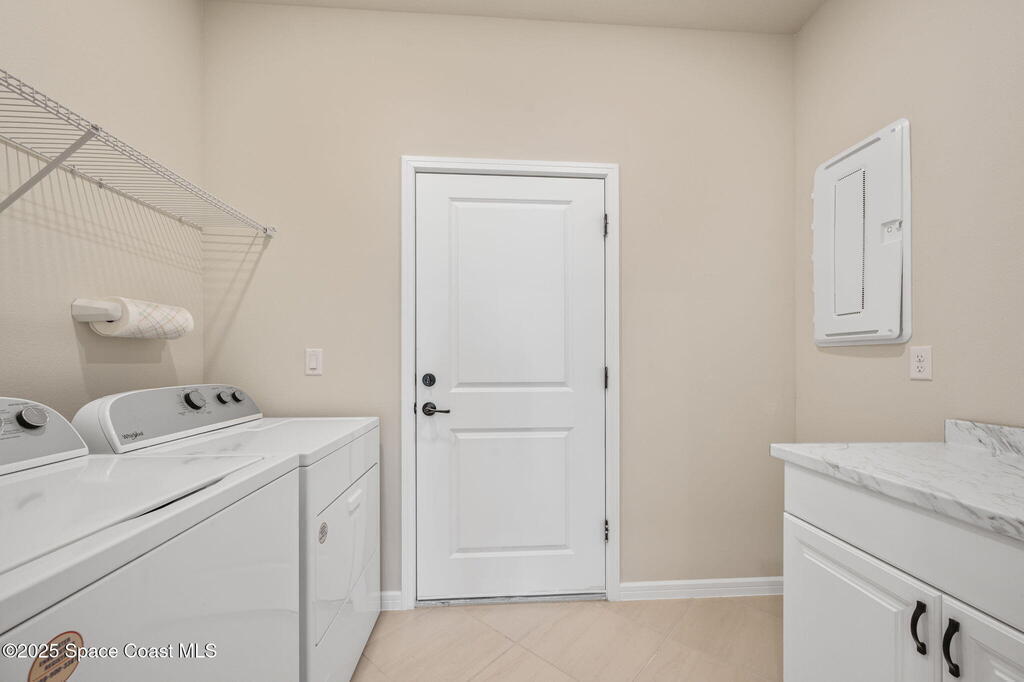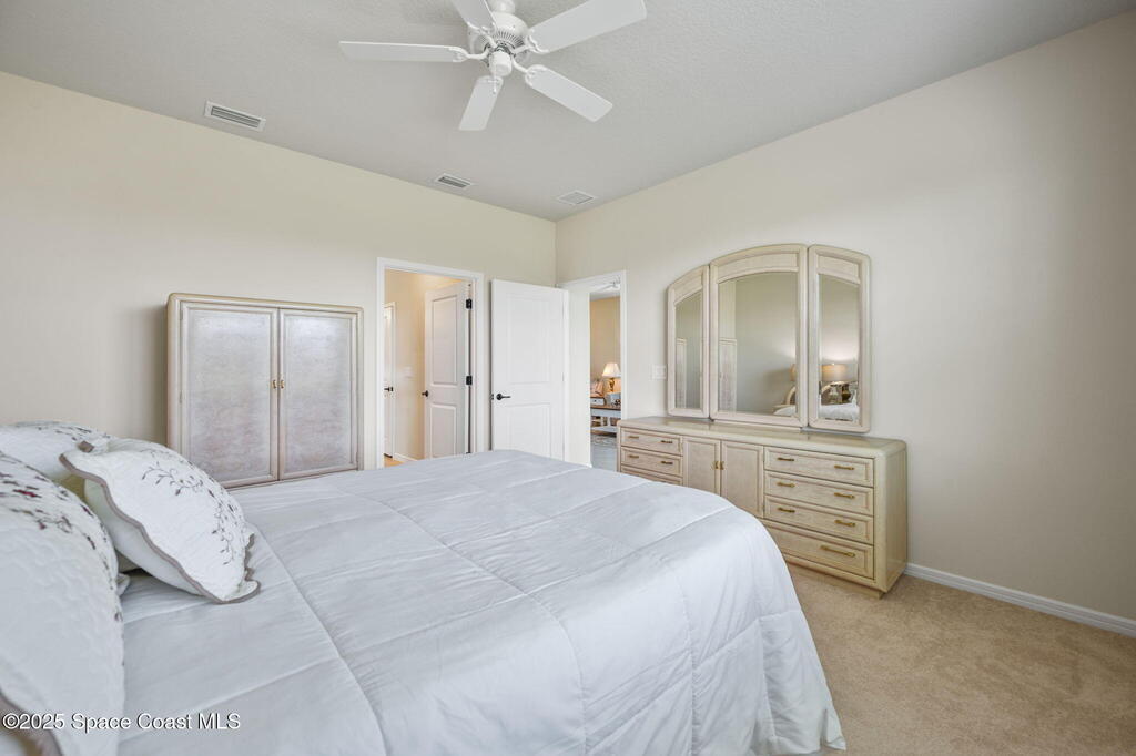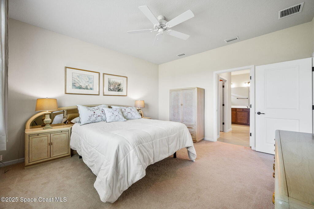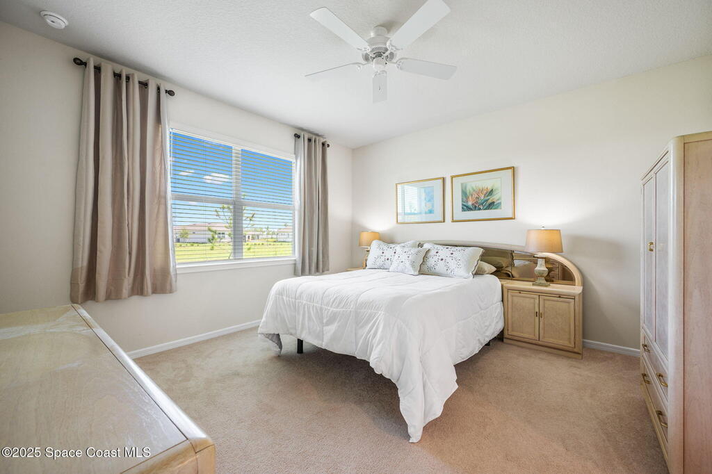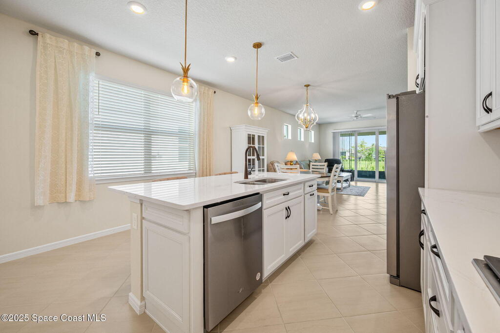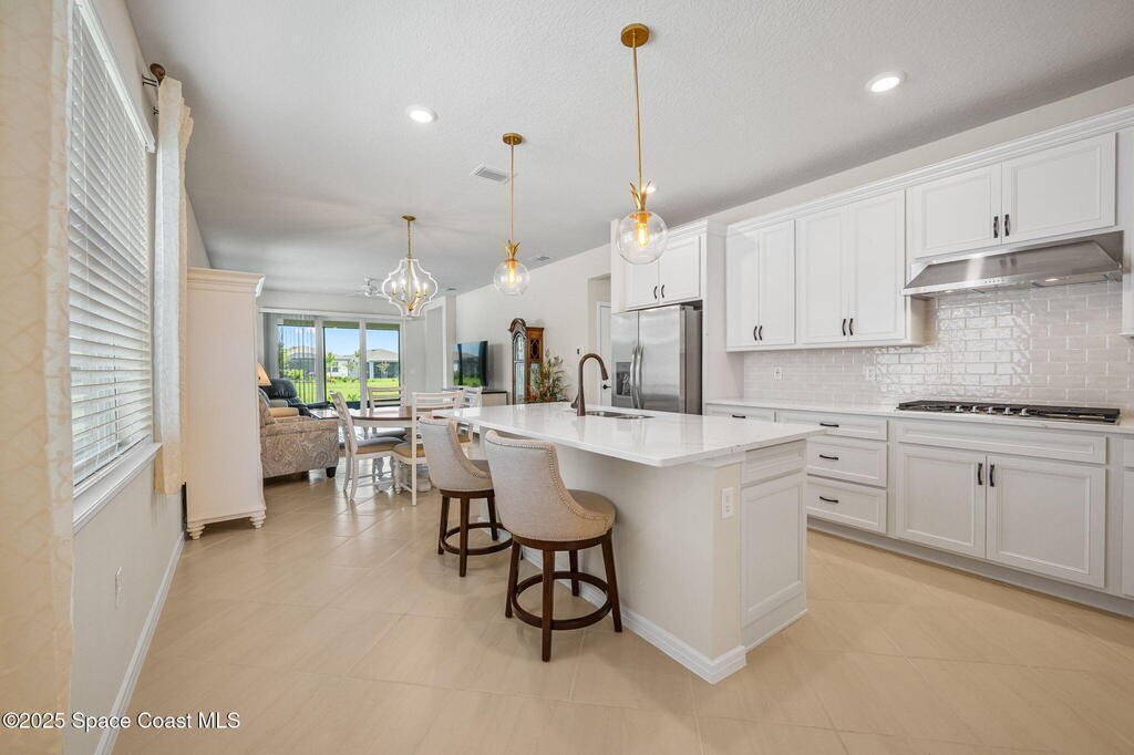 HUGE price Reduction! Stunning 2023 built property in the 55+ premier gated community of Del Webb at Viera. This property features a gourmet kitchen with white 42'' soft-close Aristrokraft cabinets, gas cooktop, stainless appliances, quartz island seating, pantry. The spacious primary suite features a walk-in closet, large walk-in shower, and double sinks. Walk-in shower at secondary bath. Triple sliding doors open to a screened-in covered lanai with beautiful garden views. IMPACT WINDOWS, attic storage w/pull down stairs, glass insert at front door, utility sink in garage, gutters, and paver driveway. Enjoy great lifestyle here at Del Webb as your all-inclusive landscaping & irrigation are included in your monthly HOA fees. There is a Lifestyle House for use as temporary Amenity Center. Also your monthly fee includes complimentary unlimited ''family membership'' at Duran Golf Club on the Par Three Course to each adult resident member of the lot & full time lifestyle coordinato