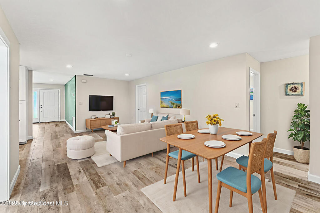 MOTIVATED SELLER! Just two blocks from the ocean, a fully renovated 5-bedroom, 2-bath pool home offering over 2,500 sq. ft. of bright, coastal-inspired living. Renovated between 2017-2020, this spacious retreat features a 2017 roof, stylish wood-look tile throughout the main areas, and soft carpet in select bedrooms. The open-concept, split-bedroom layout makes entertaining effortless while keeping day-to-day living comfortable. Outside, your private backyard oasis is ideal for swimming, sunbathing, or watching rocket launches light up the sky. Hurricane shutters add peace of mind, and a washer & dryer are included for convenience. Nestled in the heart of Satellite Beach, this home is just a short stroll to the beach, library, dog park, skate park, and more. With space, style, and an unbeatable location, this property truly checks every box!
