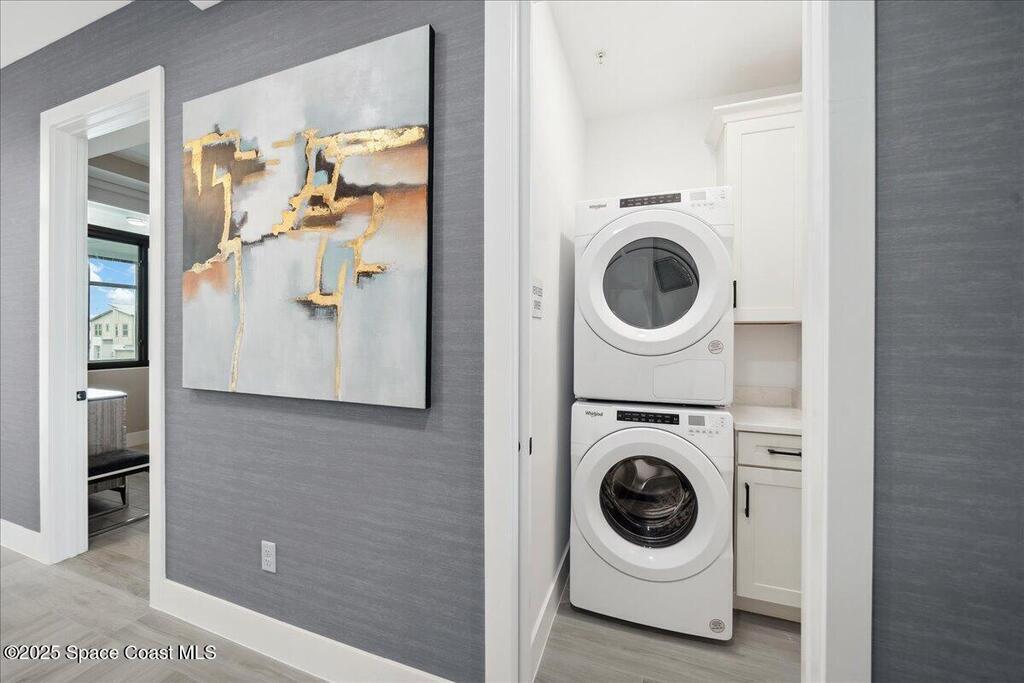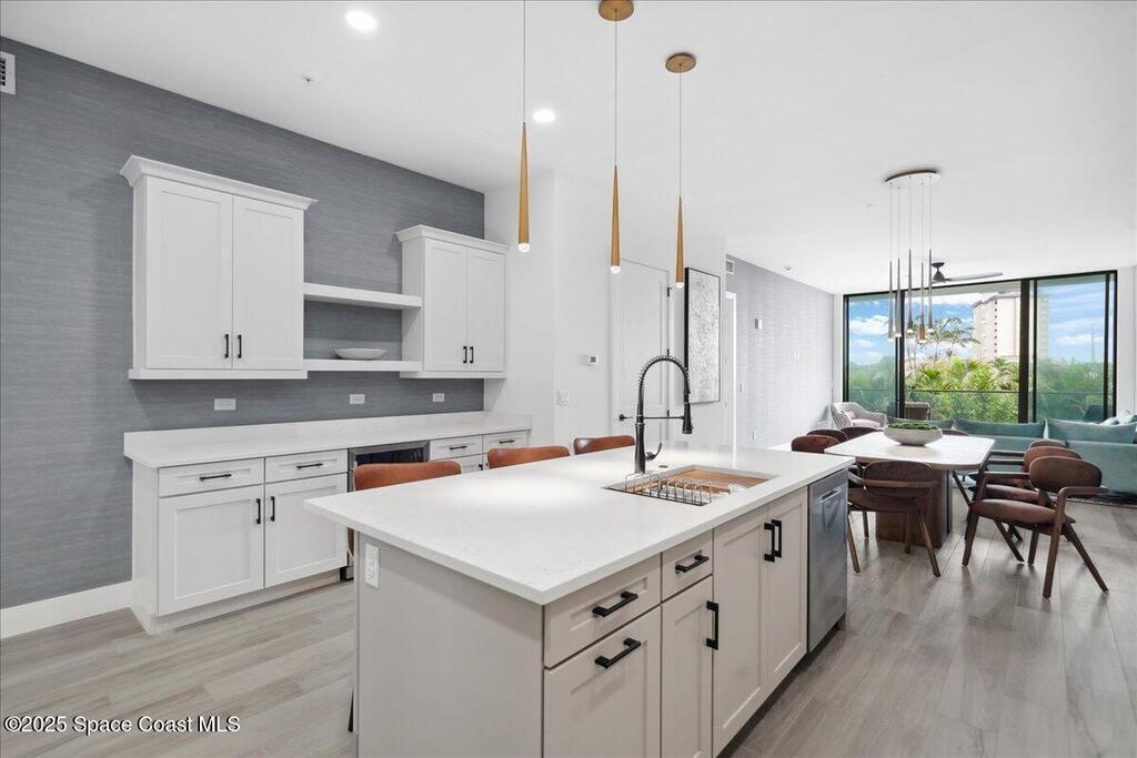 Embrace coastal living on the western hemisphere's largest turtle nesting beach with this modern-build-resort that spans from the Indian River Lagoon to the Atlantic Ocean. Relax knowing you are in an expertly built concrete super-structure where exterior strength and interior design meet tastefully in this fully furnished turnkey property. The open floorplan features three bedrooms, including two elegant en suites, and three full baths, providing an inviting and spacious haven. Unwind by the riverside resort-style pool cabanas or walk along the beaches where turtle hatchlings race to the ocean. Amenities include a future gym, marina, watersport rental and a beachside comfort station. Lastly, if you can't live here all the time, take comfort in knowing you have flexible rental options.